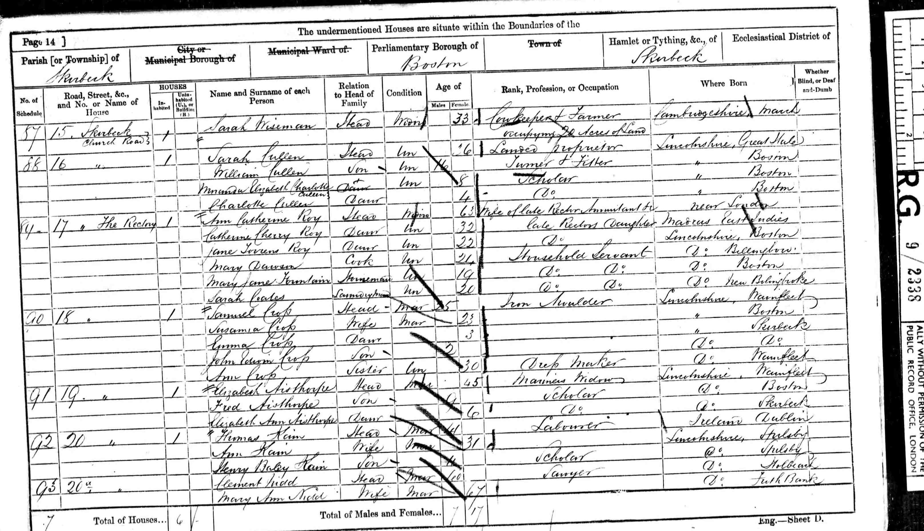 • Lived at: 20a The Rectory, 1861, Skirbeck, Lincolnshire, England. 9 • Occupation: Sawyer, 1861, Skirbeck, Lincolnshire, England. 9