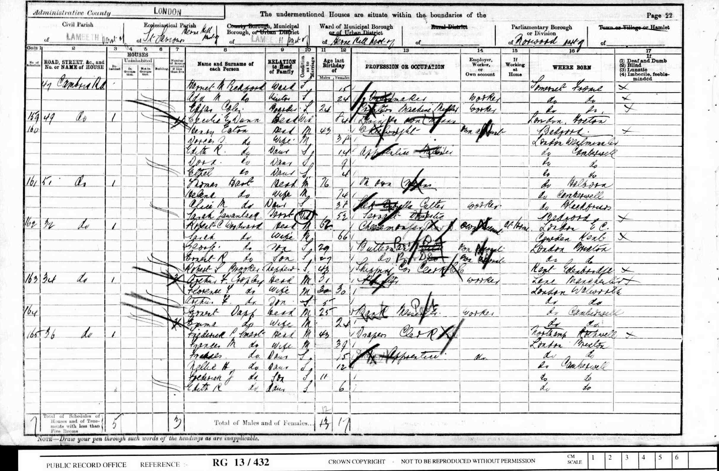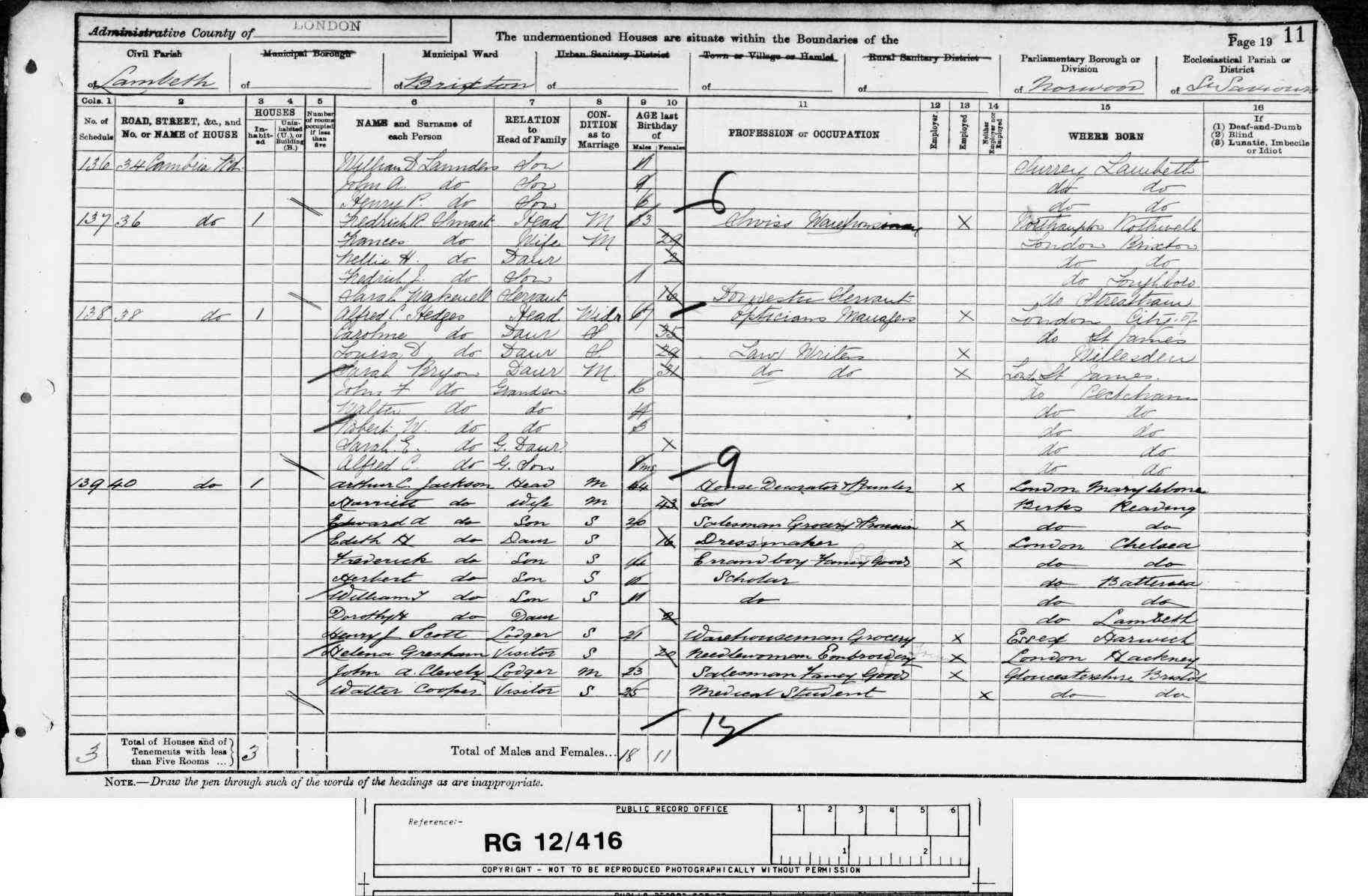 • Lived at: 34 Cambria Road, 1891, Lambeth.