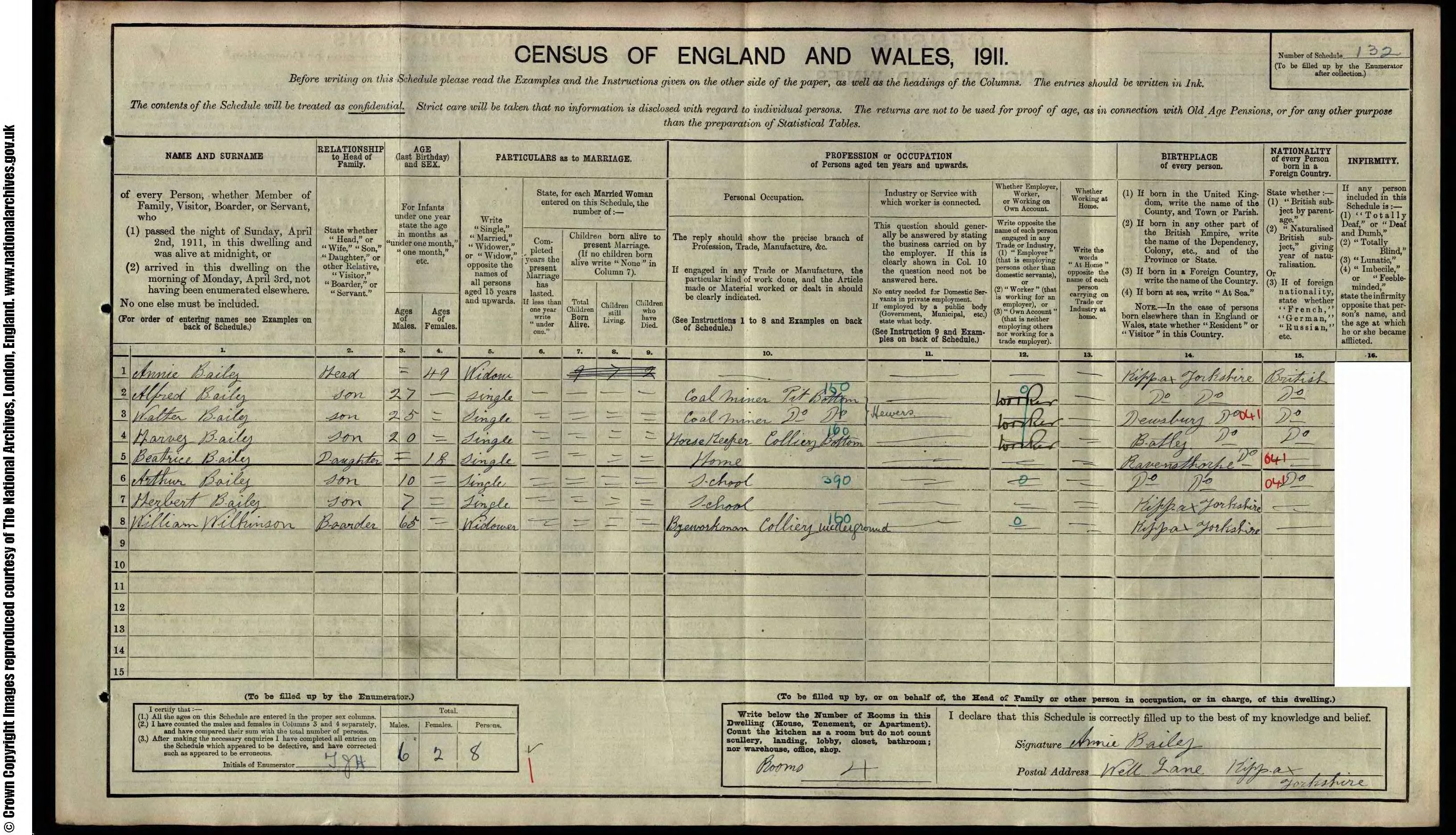 • Occupation: Coal Miner Pit Bottom, 1911, Kippax. |
