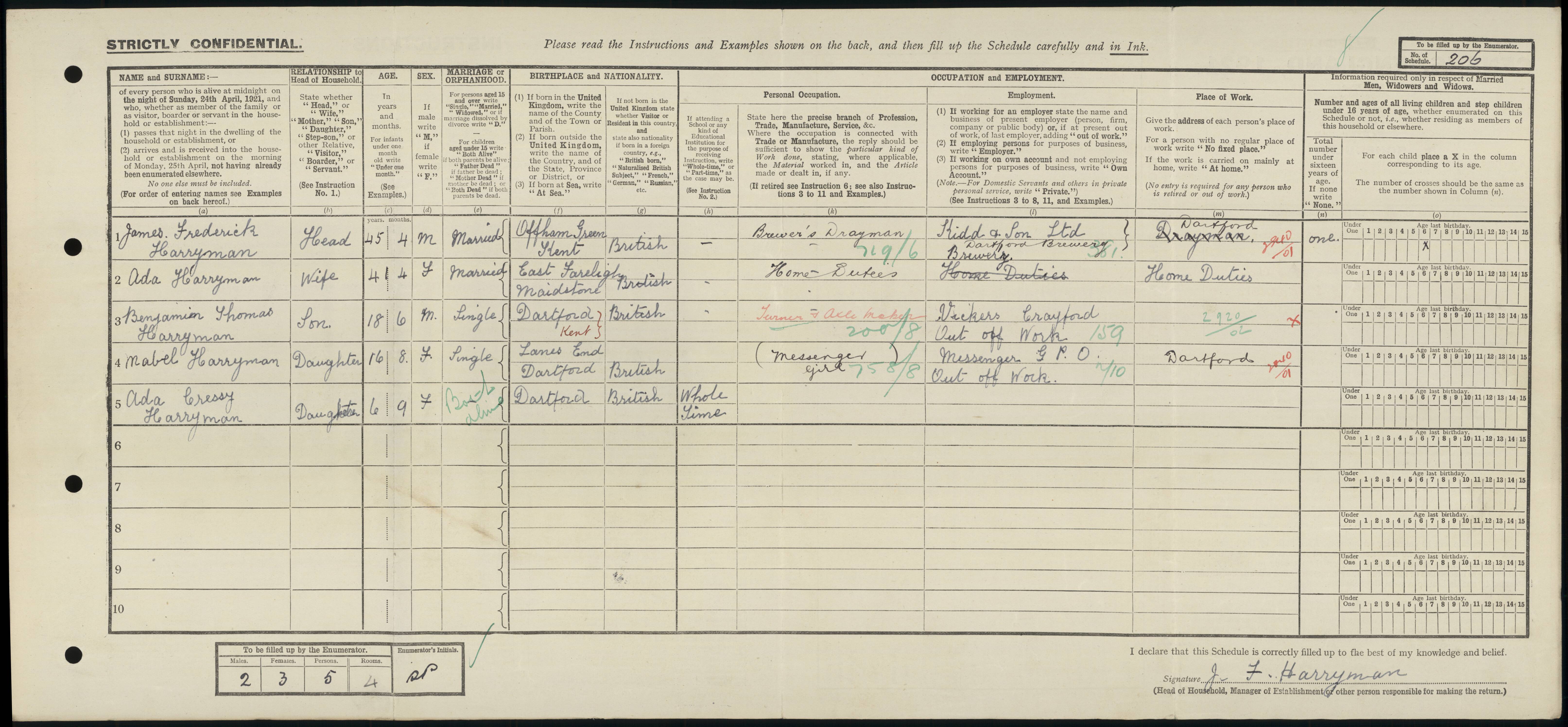 • Lived at: 43 Blenheim Road, 1921-1957, Dartford, Kent, England. • Occupation: Brewer's Drayman, 1921, Dartford, Kent, England. • Occupation: Iron Foundry Worker, Sep 1939, Dartford, Kent, England.