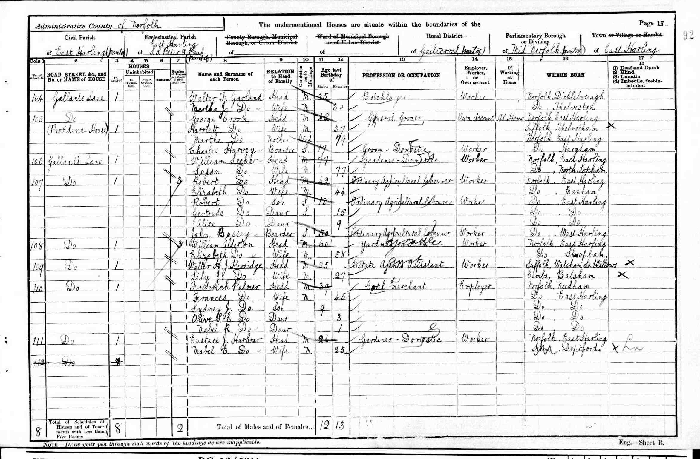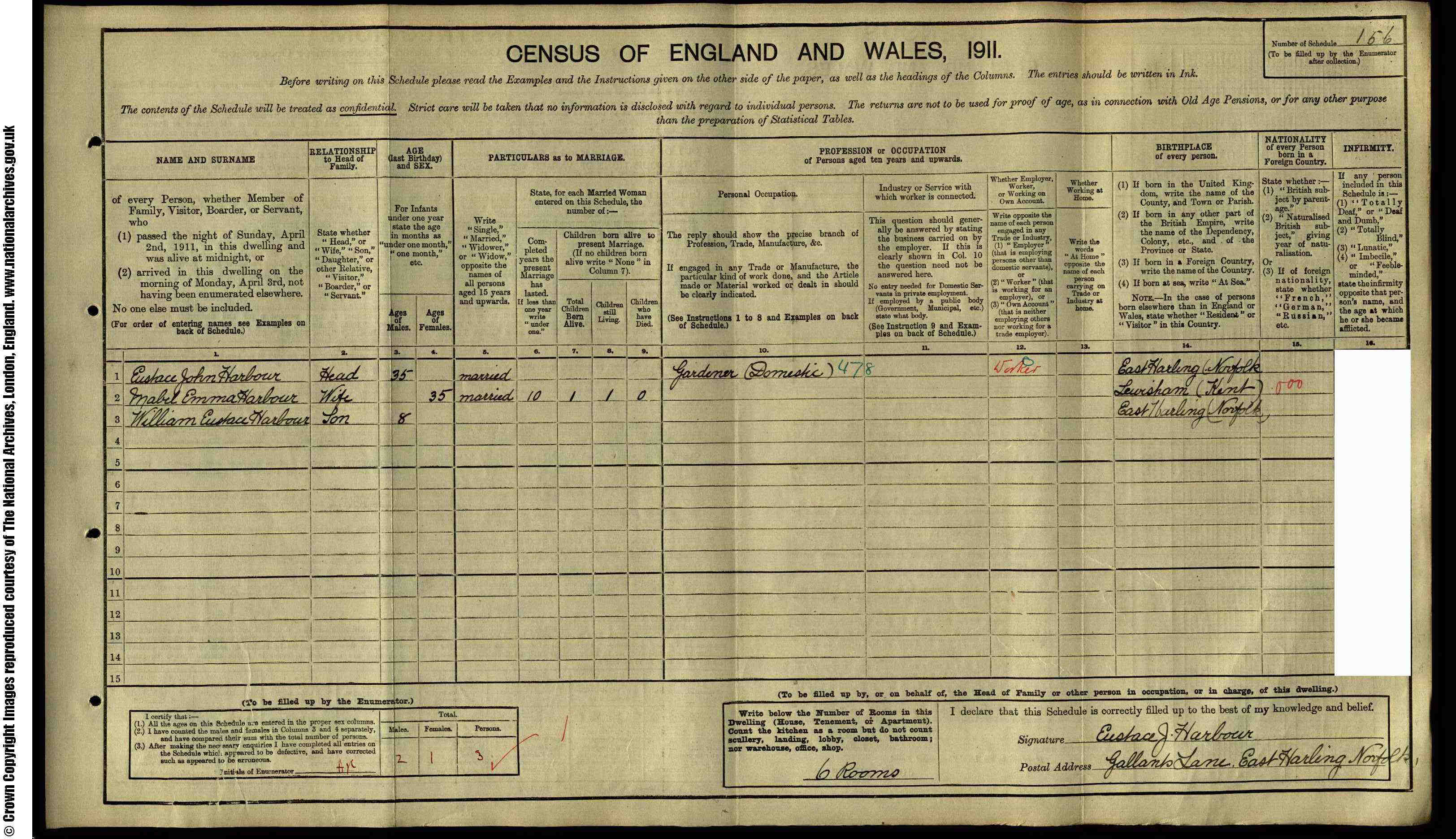 • Lived at: Gallants Lane, 1911, East Harling, Norfolk.
