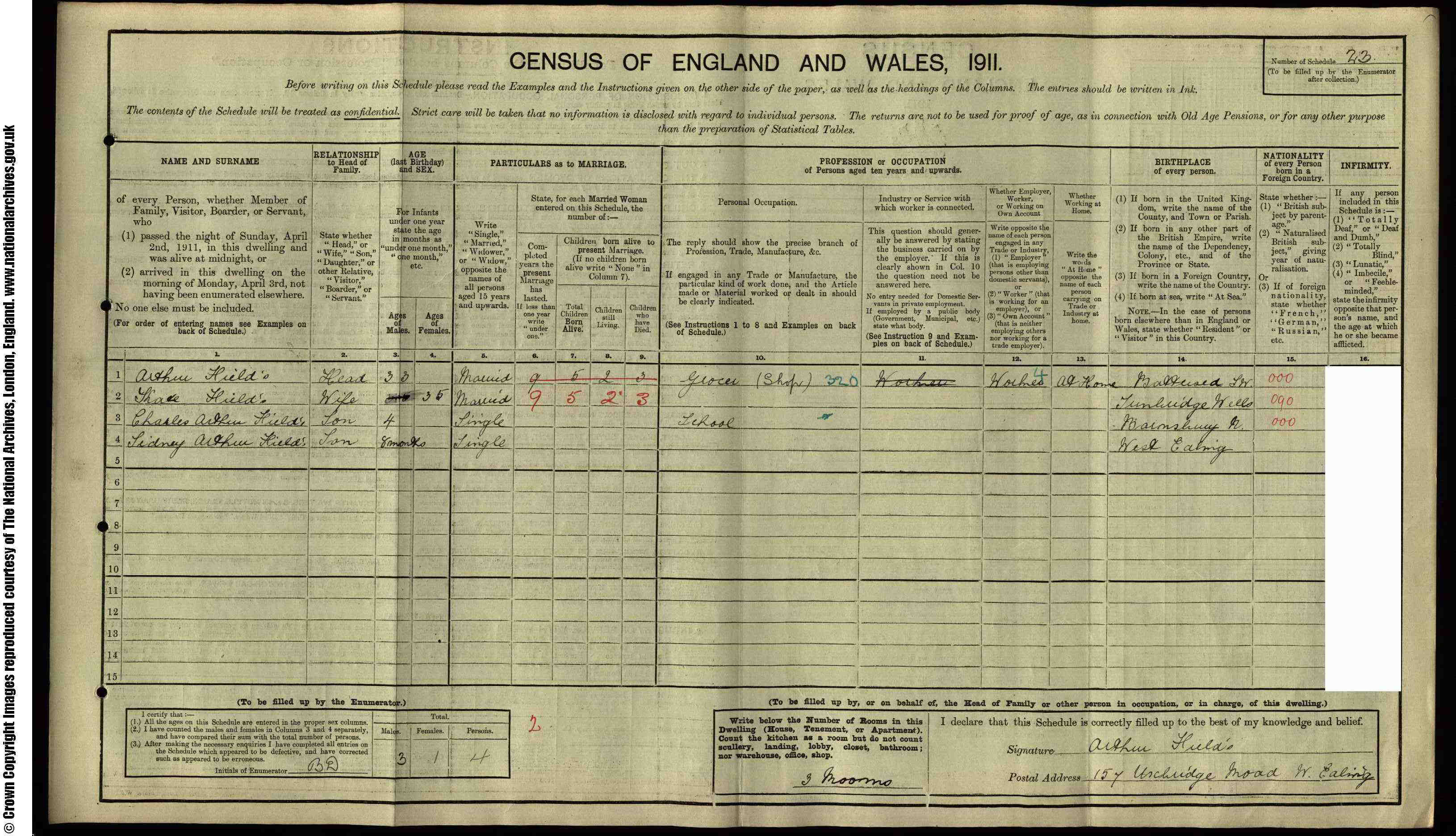 • Lived at: 157 Uxbridge Road, 1911, West Ealing.