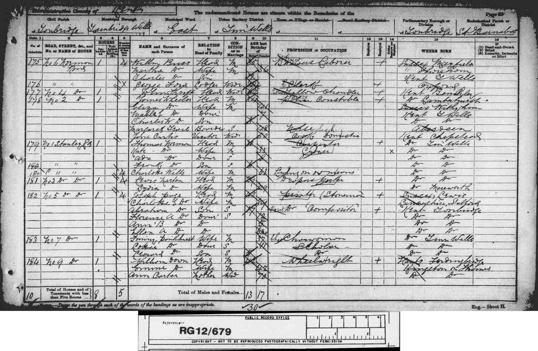 Death Notes: Name: Events • Lived at: Kent Street, 1871, Mereworth, Kent, England. 5 • Lived at: 4 Rink Road, 1881, Tonbridge Wells, Kent, England. 6 • Occupation: Servant, 1881, Tonbridge Wells, Kent, England. 6 • Lived at: 3 Stanley Road, 1891, Tonbridge Wells, Kent, England.