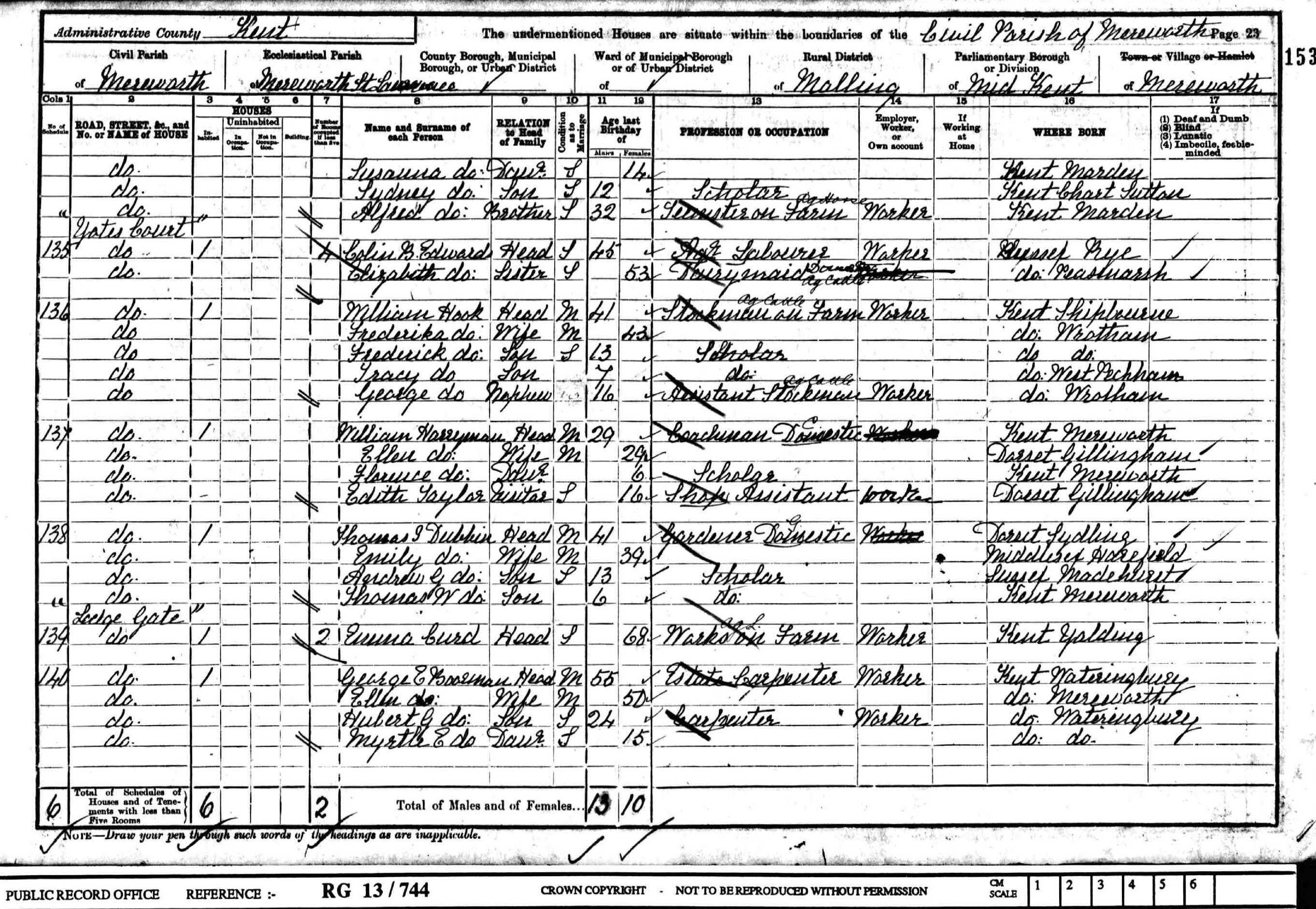 • Occupation: Coachman, Domestic, 1901, Mereworth, Kent, England. 6