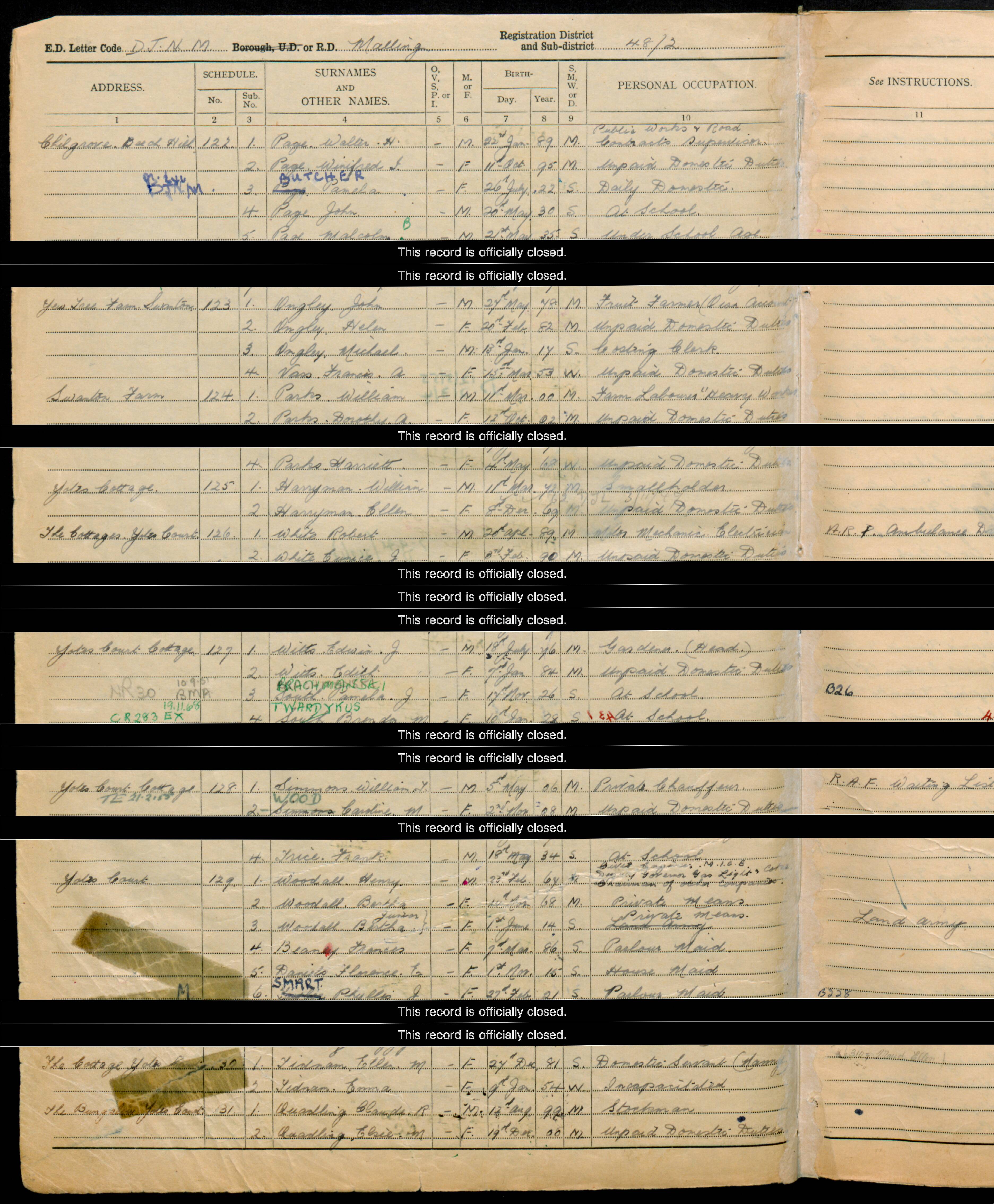 • Lived at: Tol Villa, 1921, Mereworth, Kent, England. • Occupation: Stud Groom, 1921, Malling R.D., Kent, England. • Lived at: Yates Cottage, 1939, Malling, Kent, England.