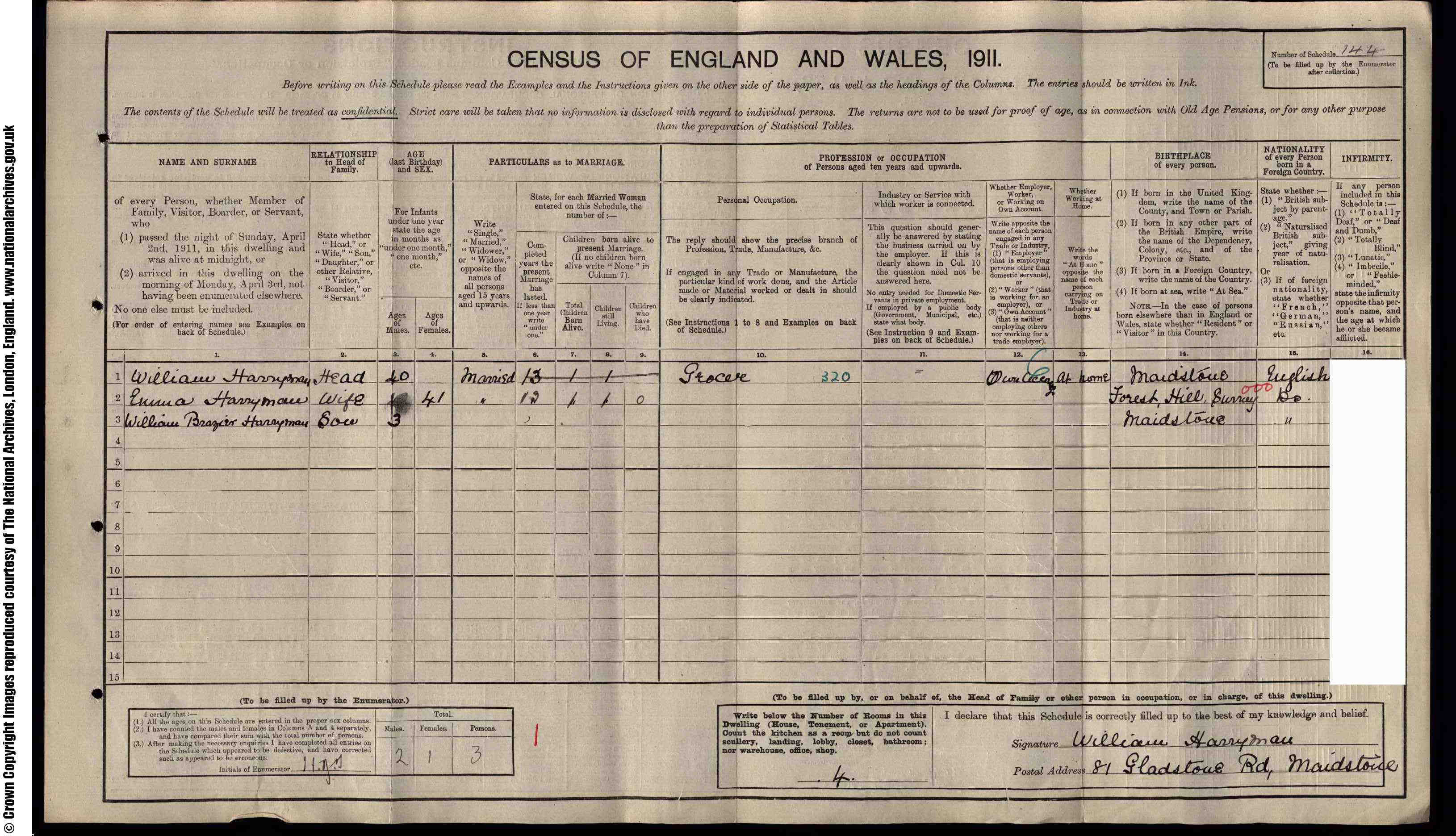 Events • Lived at: 62 Kingsley Road, 1871, East Maidstone, Kent, England. 6 • Lived at: Shepway street, 1881, Maidstone, Kent, England. 7 • Lived at: 88 Melville Place, 1891, Maidstone, Kent, England. 8 • Occupation: Grocer's Assistant, 1891, Maidstone, Kent, England. 8 • Lived at: 38 Bower Street, 1901, Maidstone, Kent, England. 1 • Occupation: Grocer's Warehouseman, 1901, Maidstone, Kent, England. 5
