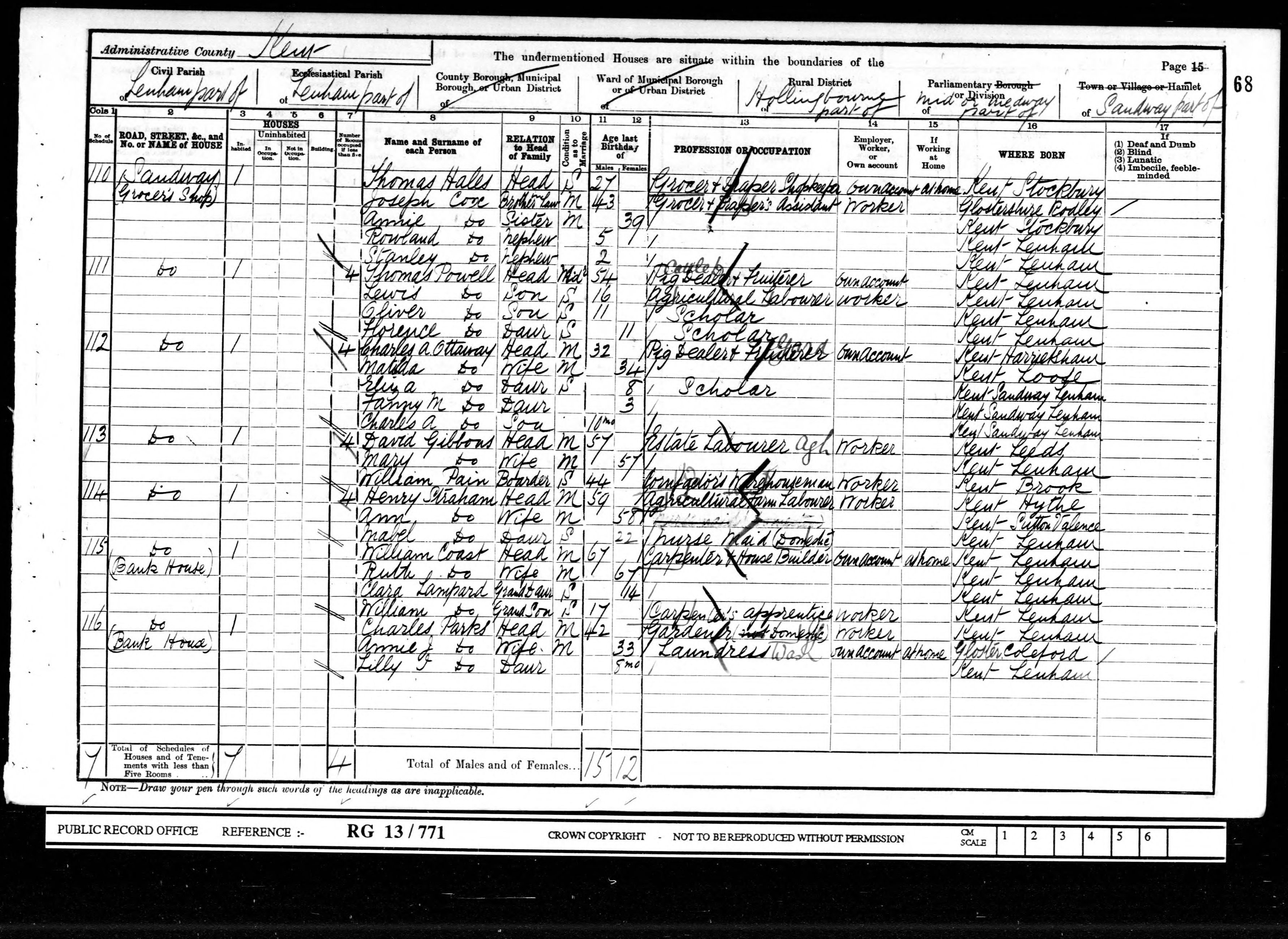 • Lived at: Sandway (Grocer's Shop), 1901, Hollingbourne, Kent, England. • Occupation: Grocer and Draper Shopkeeper1, 1901, Hollingbourne, Kent, England.
