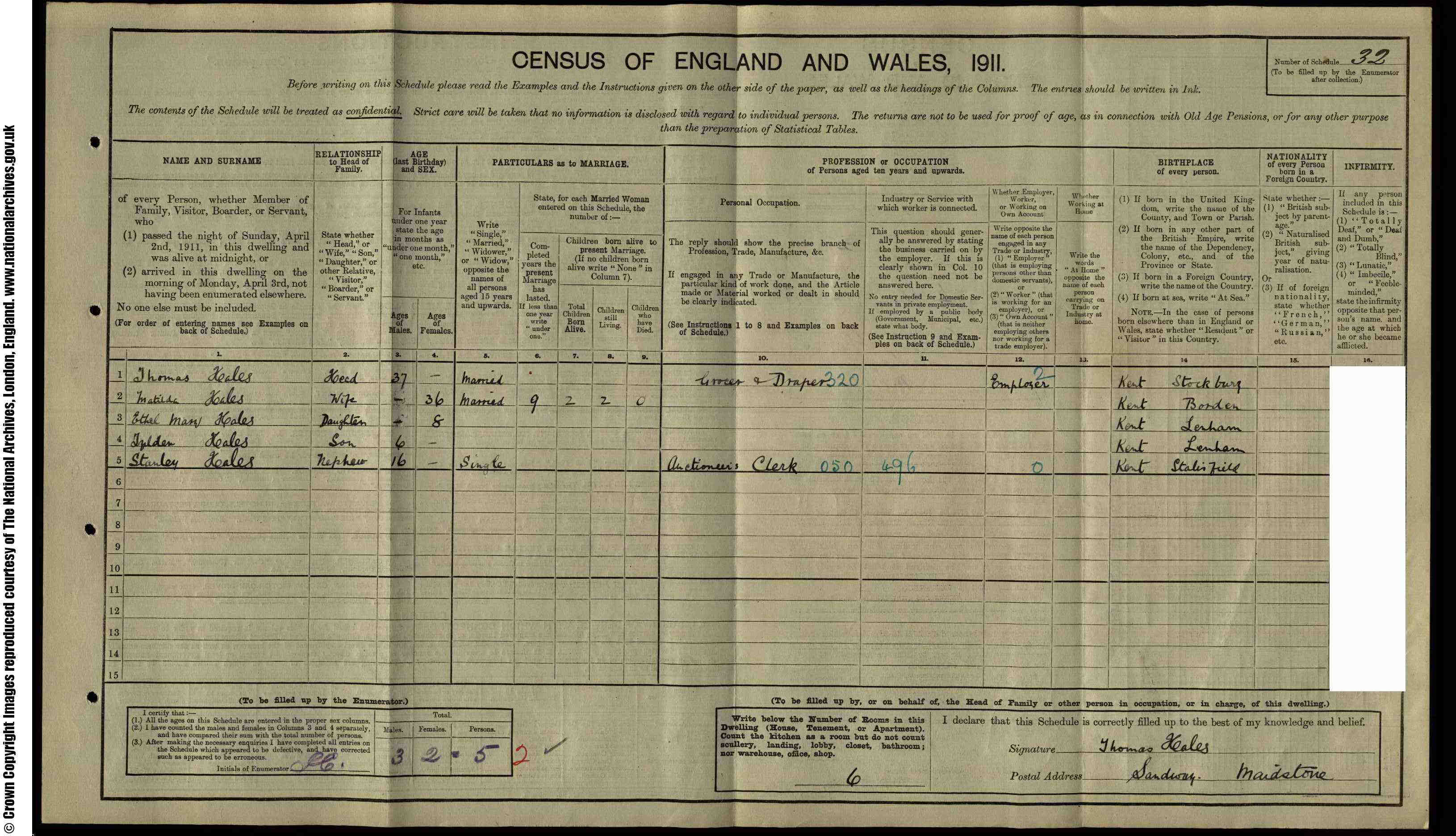 • Occupation: Grocer and Draper, 1911, Maidstone, Kent, England.