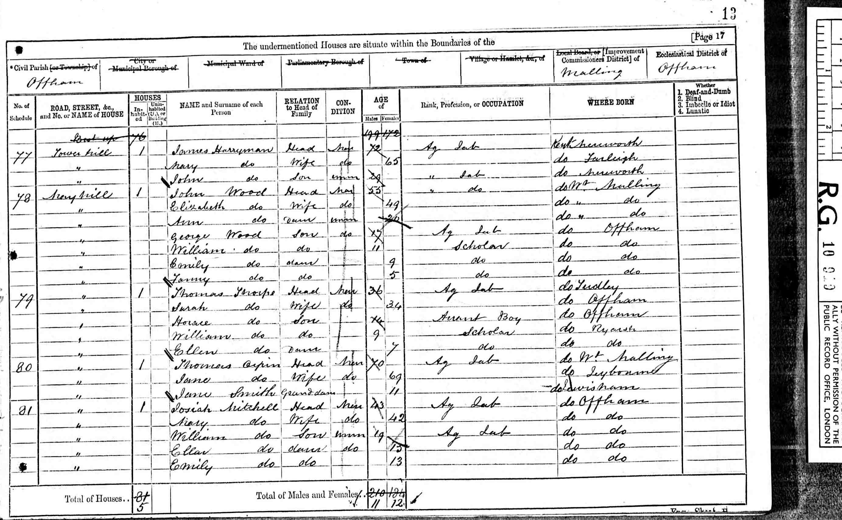 • Lived at: Offham Street, 1861, Offham, Kent, England. 3 • Occupation: Labourer, 1861, Offham, Kent, England. 3