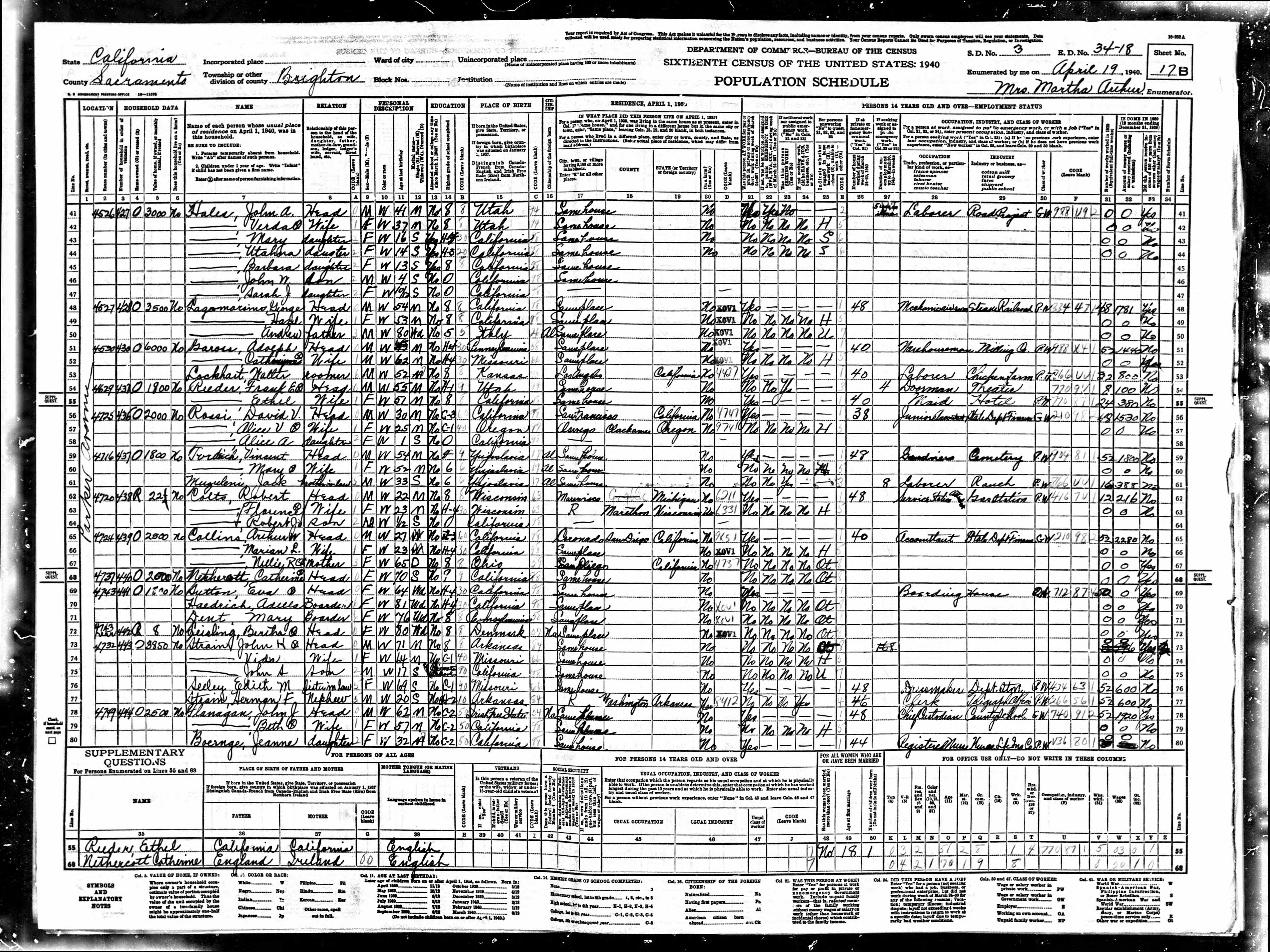• Lived at: 4526 Parker Avenue, 1940, Brighton, Sacremento, California.