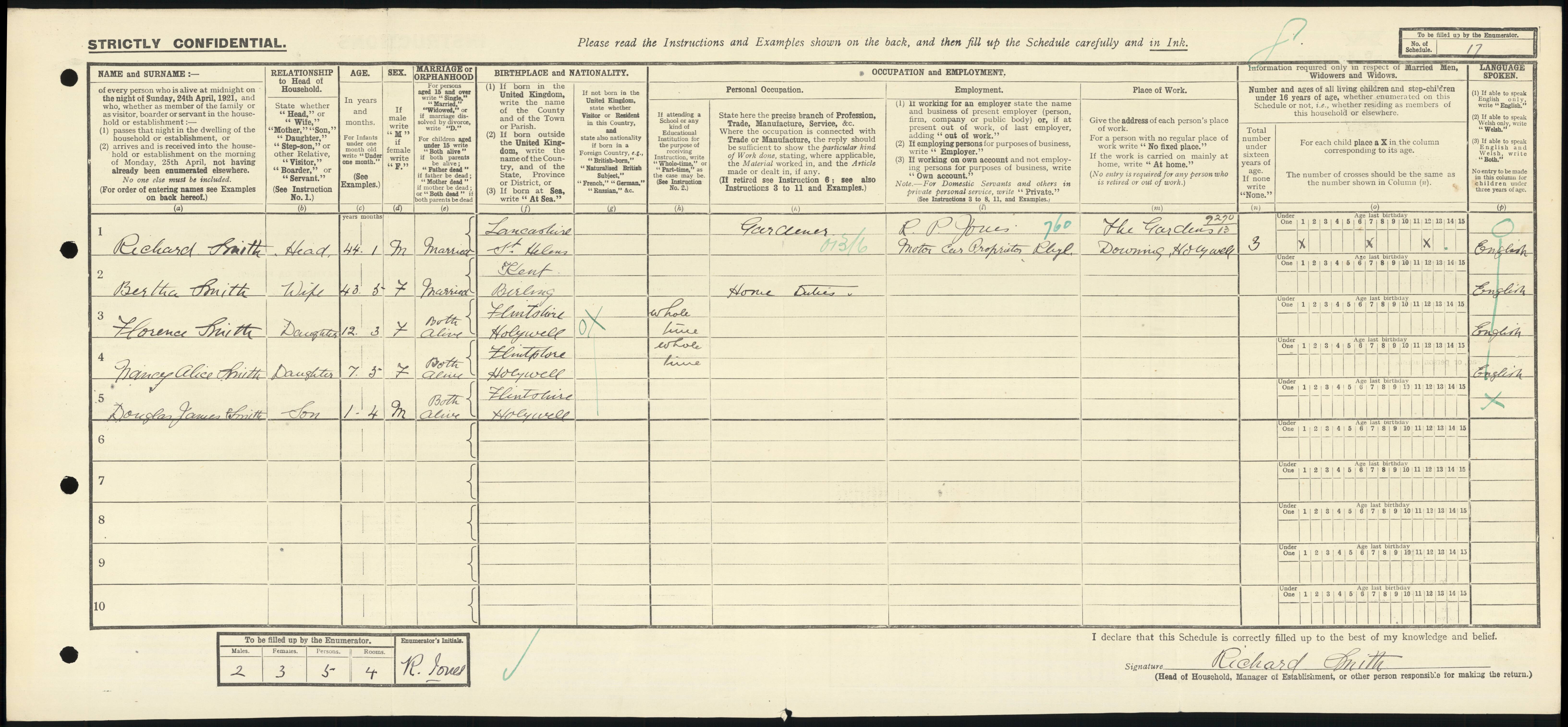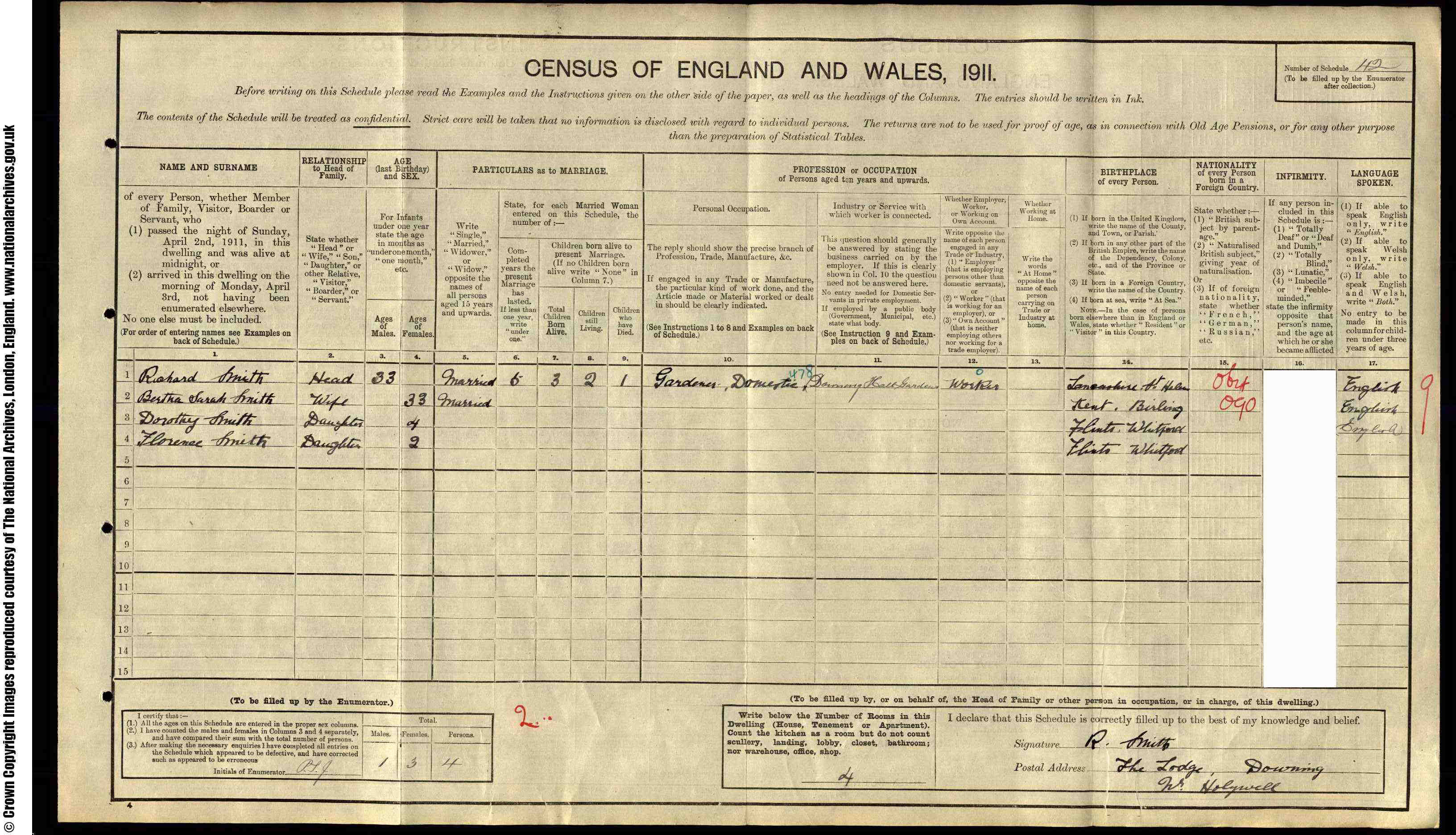 • Lived at: The Lodge, 1911, Downing, Flintshire.
