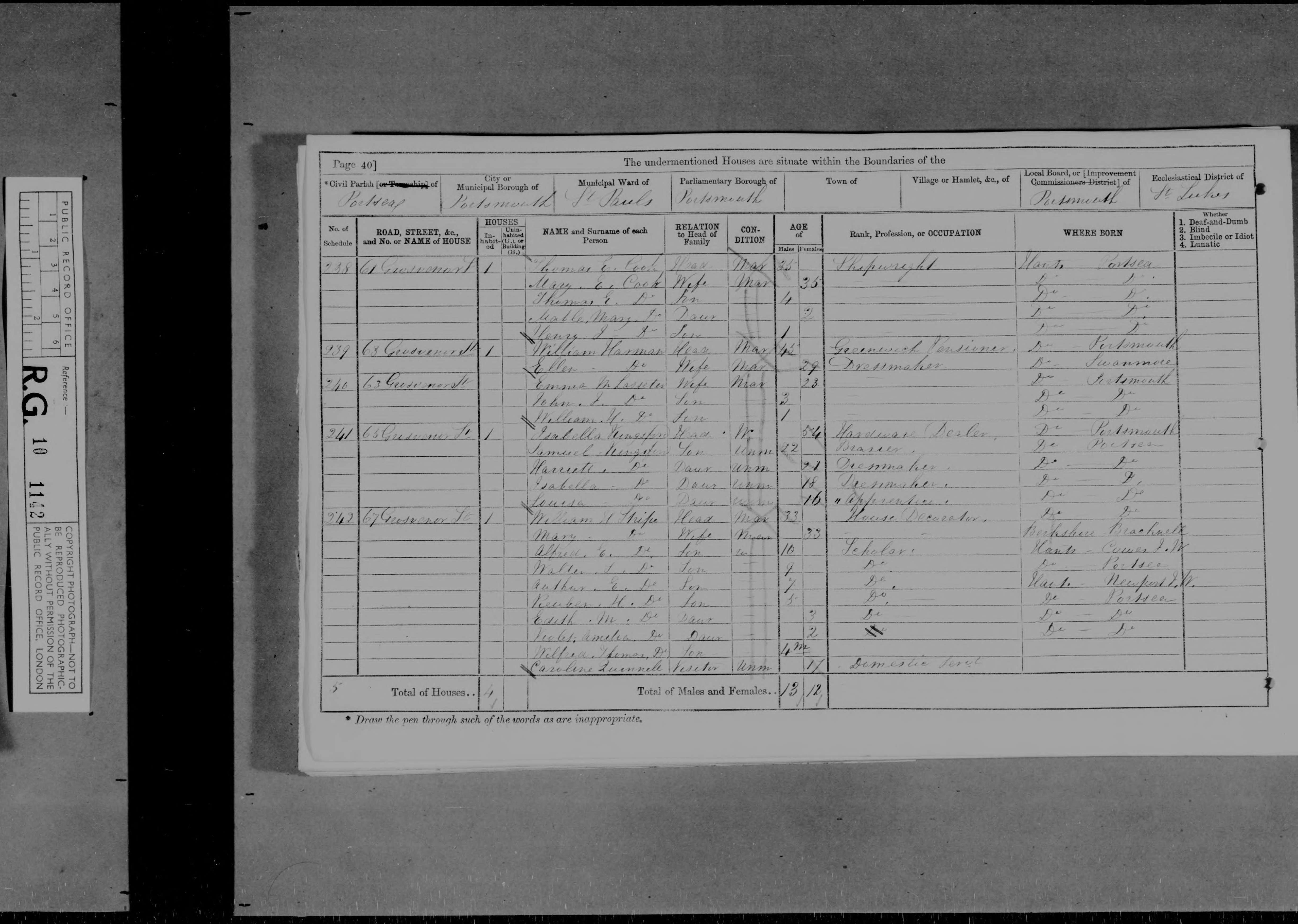 • Lived at: Portsea, 1901, Hampshire, England. • Occupation: House Agent, 1901, Portsmouth.