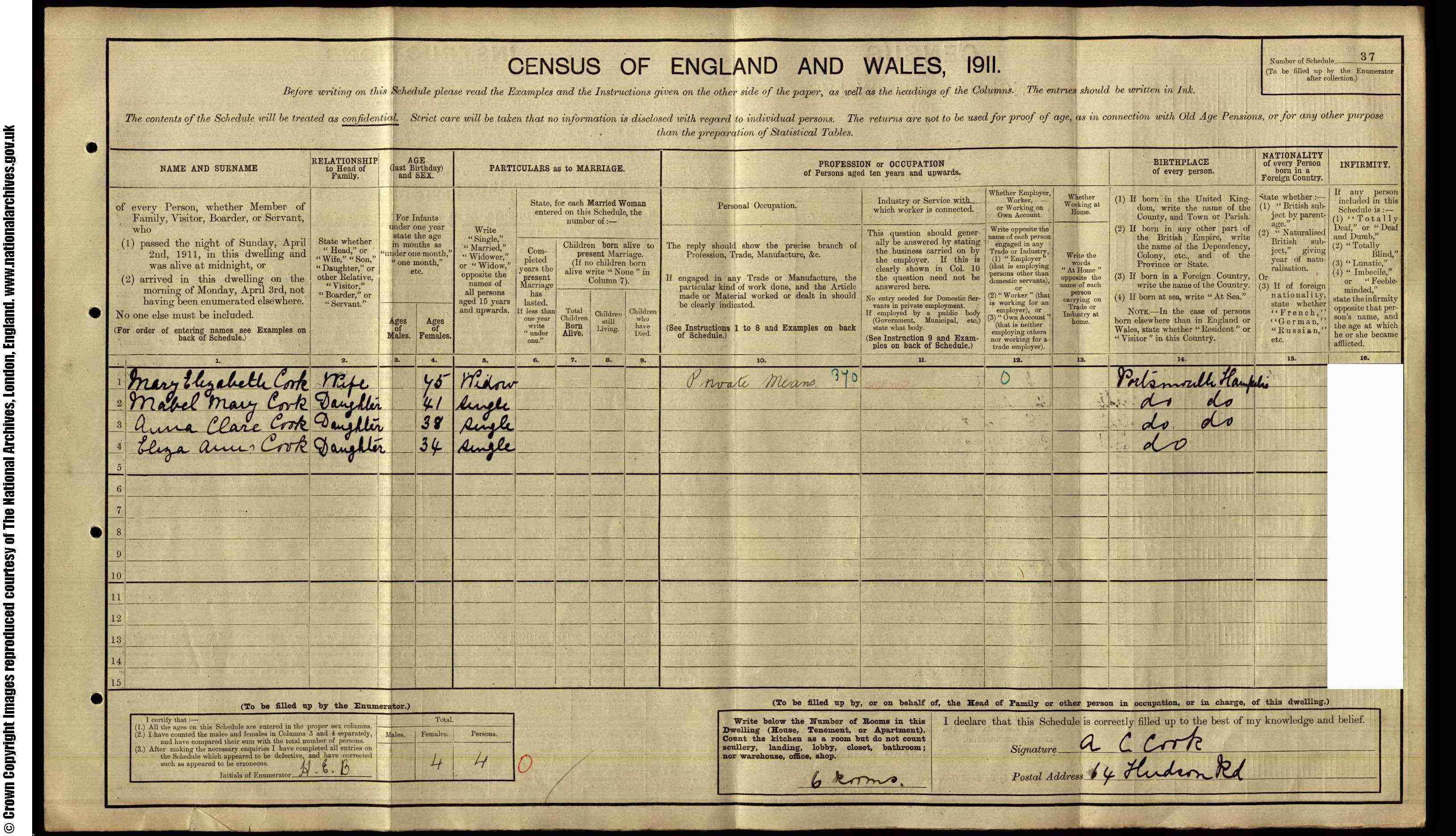 • Lived at: 64 Hudson Road, 1911, Portsmouth.