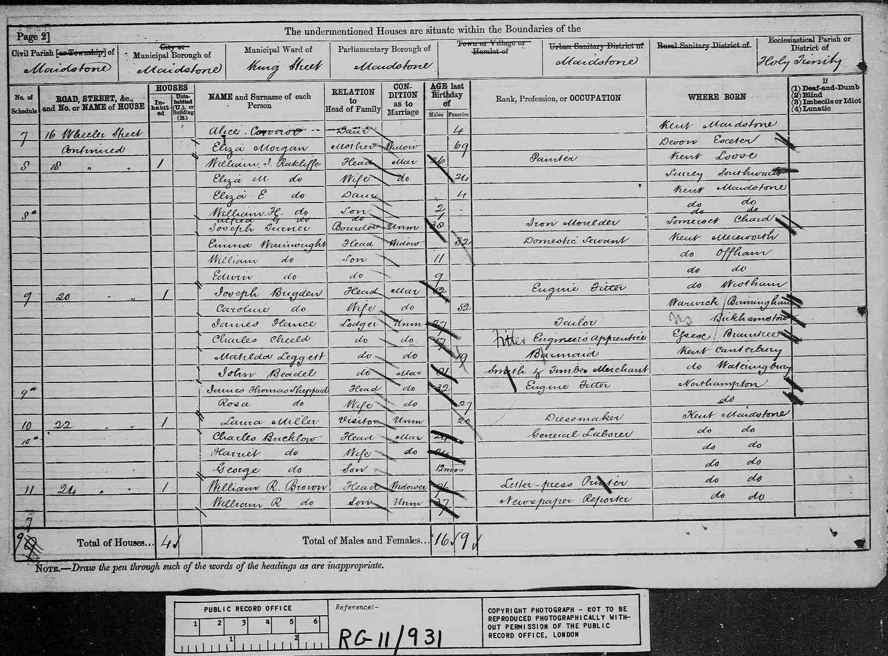 • Lived at: Maidstone, 1881, Kent, England. Emma married William Wainwright on 10 Oct 1869 in Wrotham, Kent, England. (William Wainwright was born circa 1841 in Loughborough, England and died between 1872 and 1881.) |