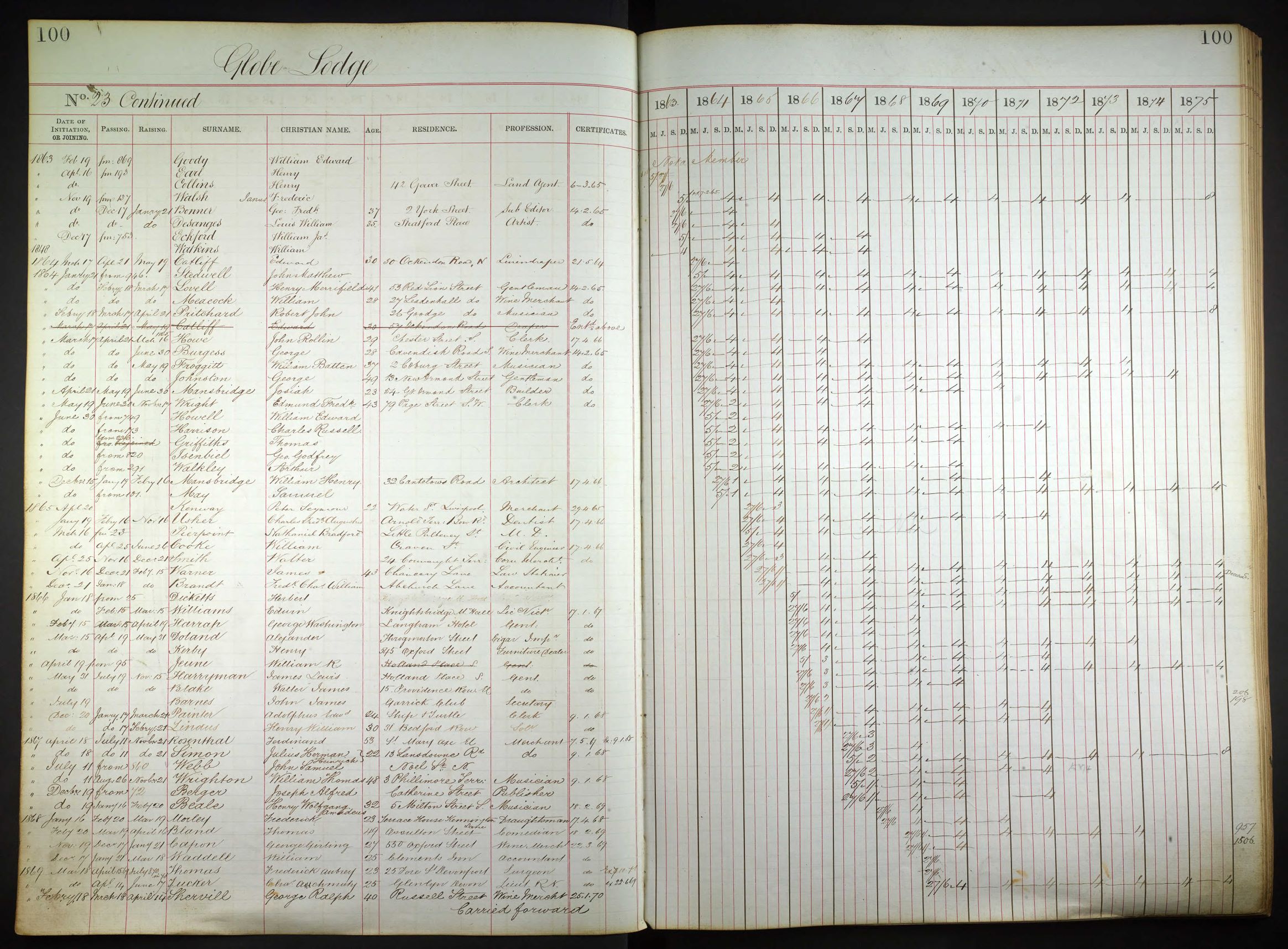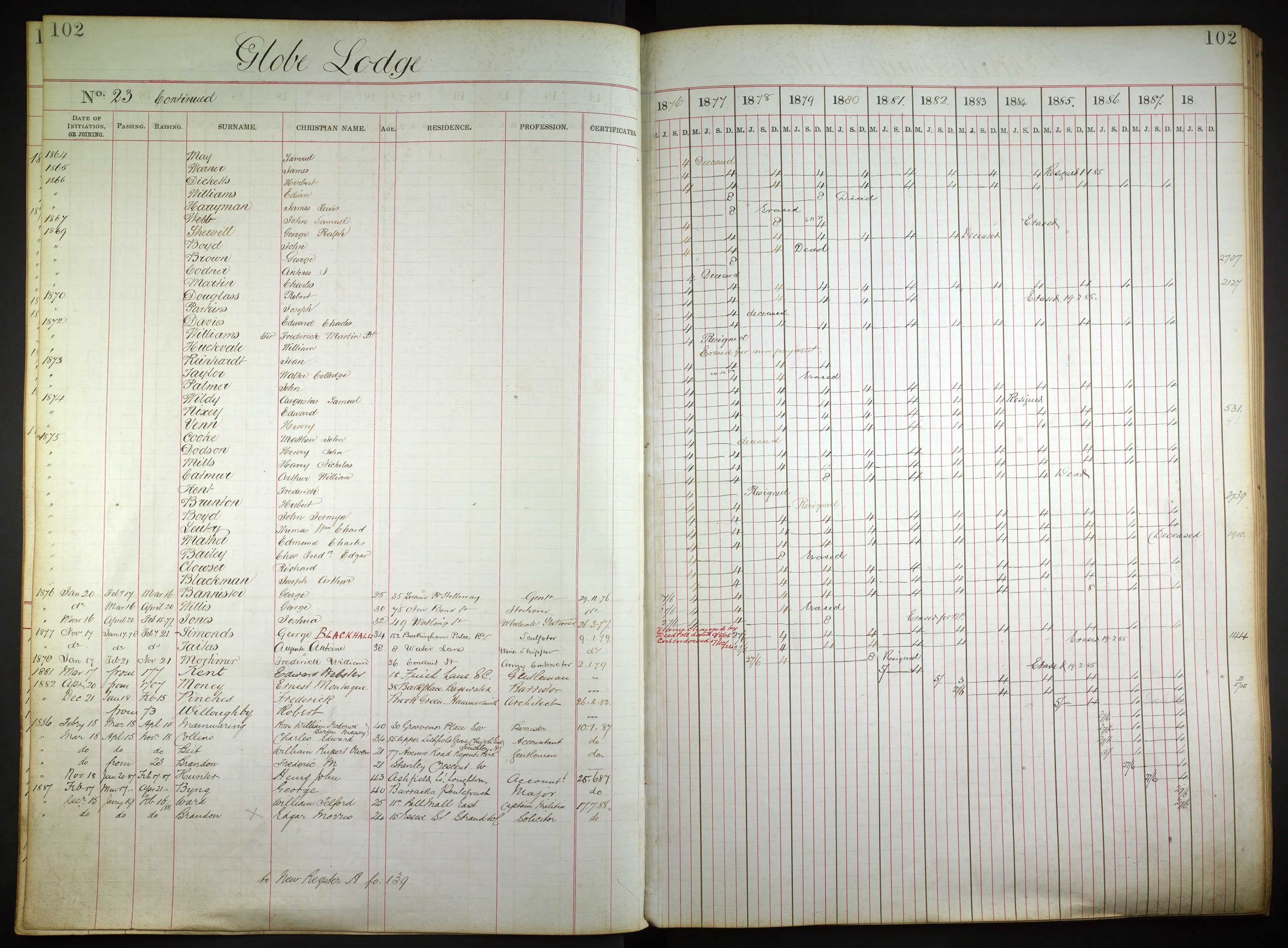 • Membership: United Grand Lodge of Freemason, Nov 1866-1880, Globe Lodge.