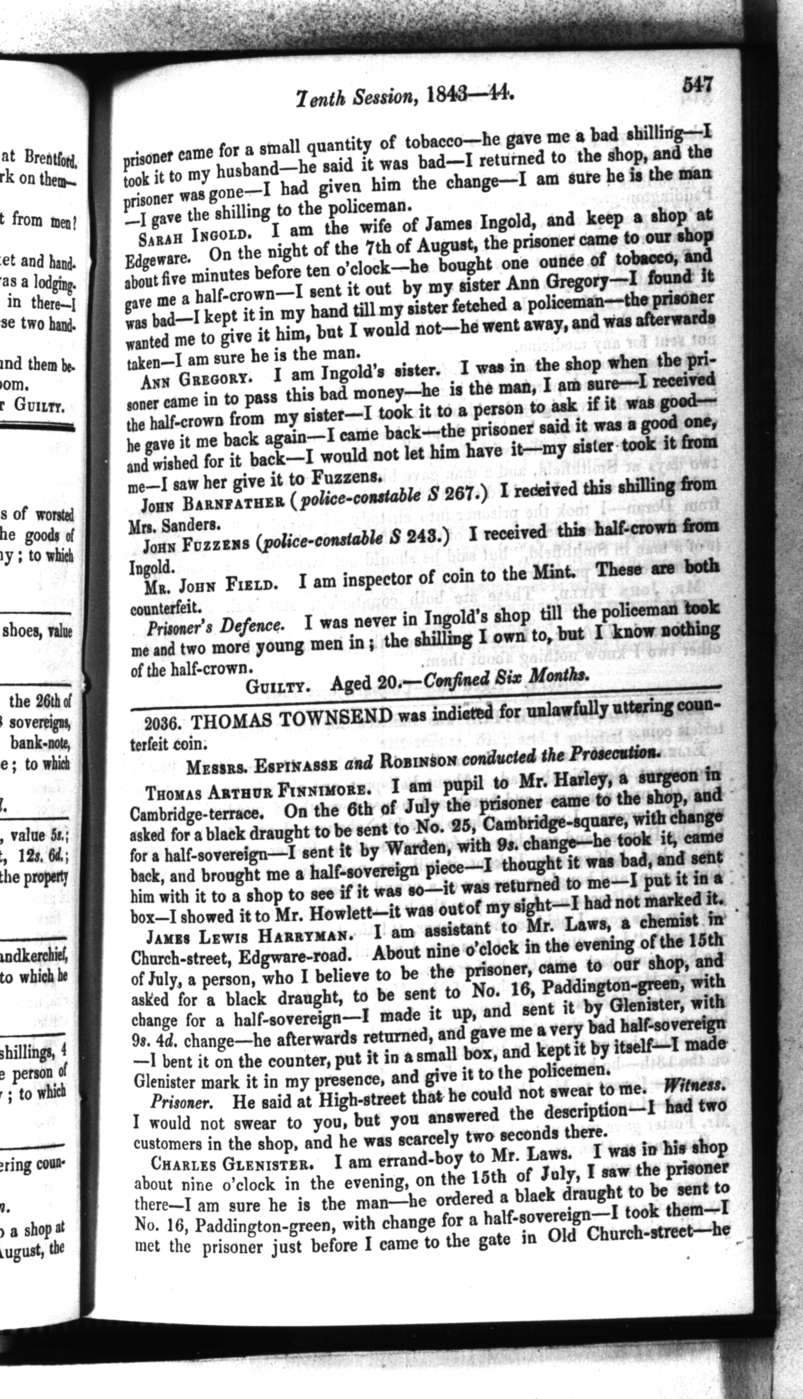 • Witnesses: Proceedings of Old Bailey, 27 Nov 1843, London. d