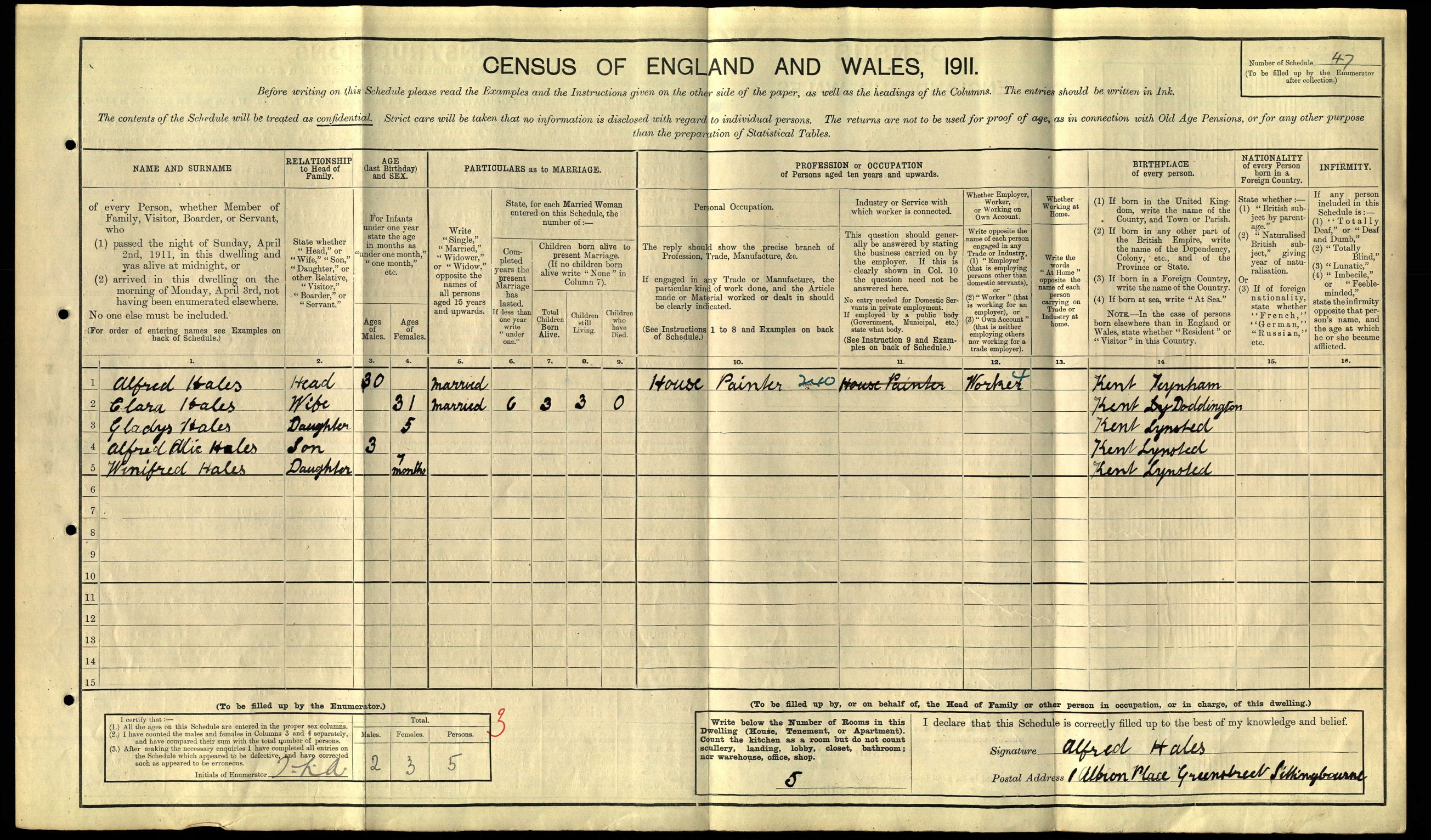 • Occupation: Painter, 1911, Lynsted, Kent, England.
