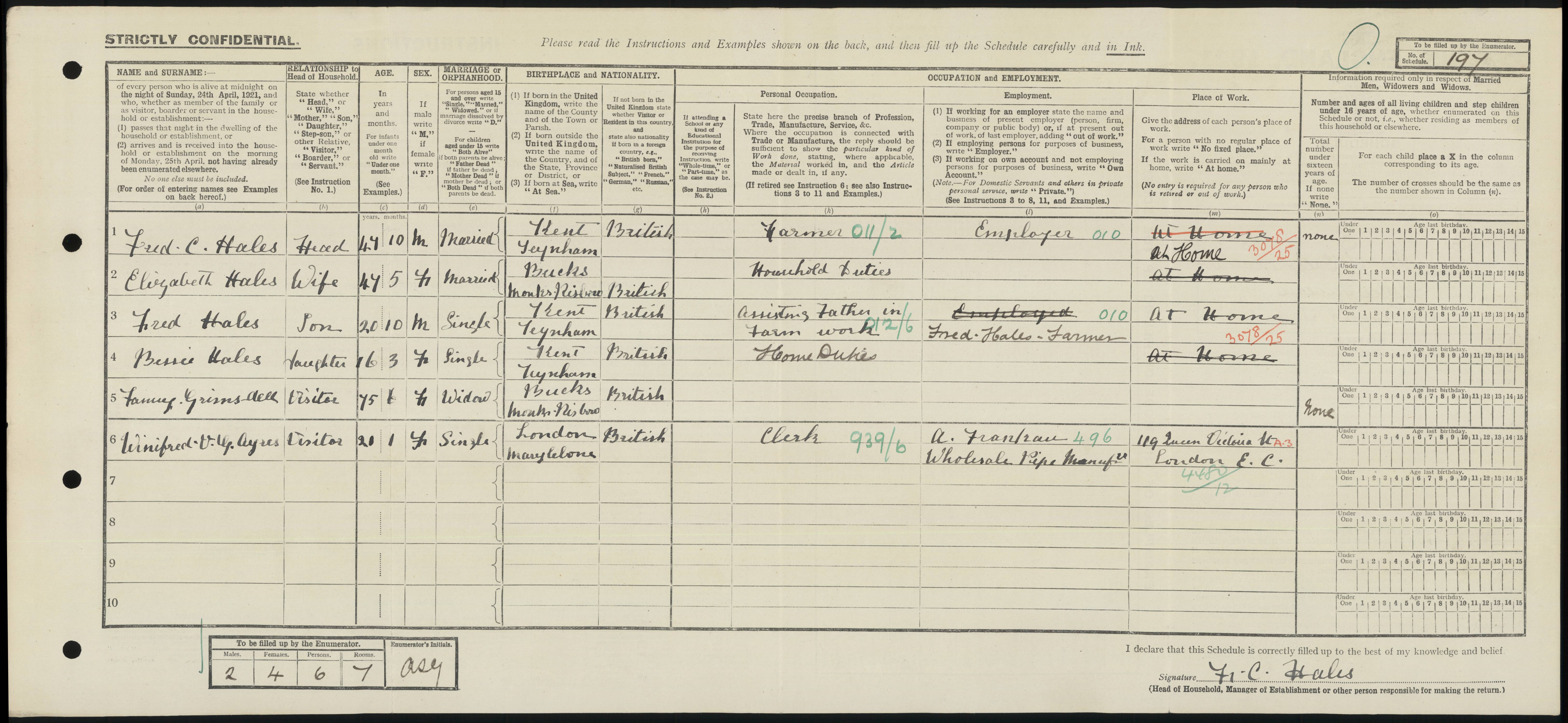 • Occupation: Farmer, 1921, Teynham, Kent, England.