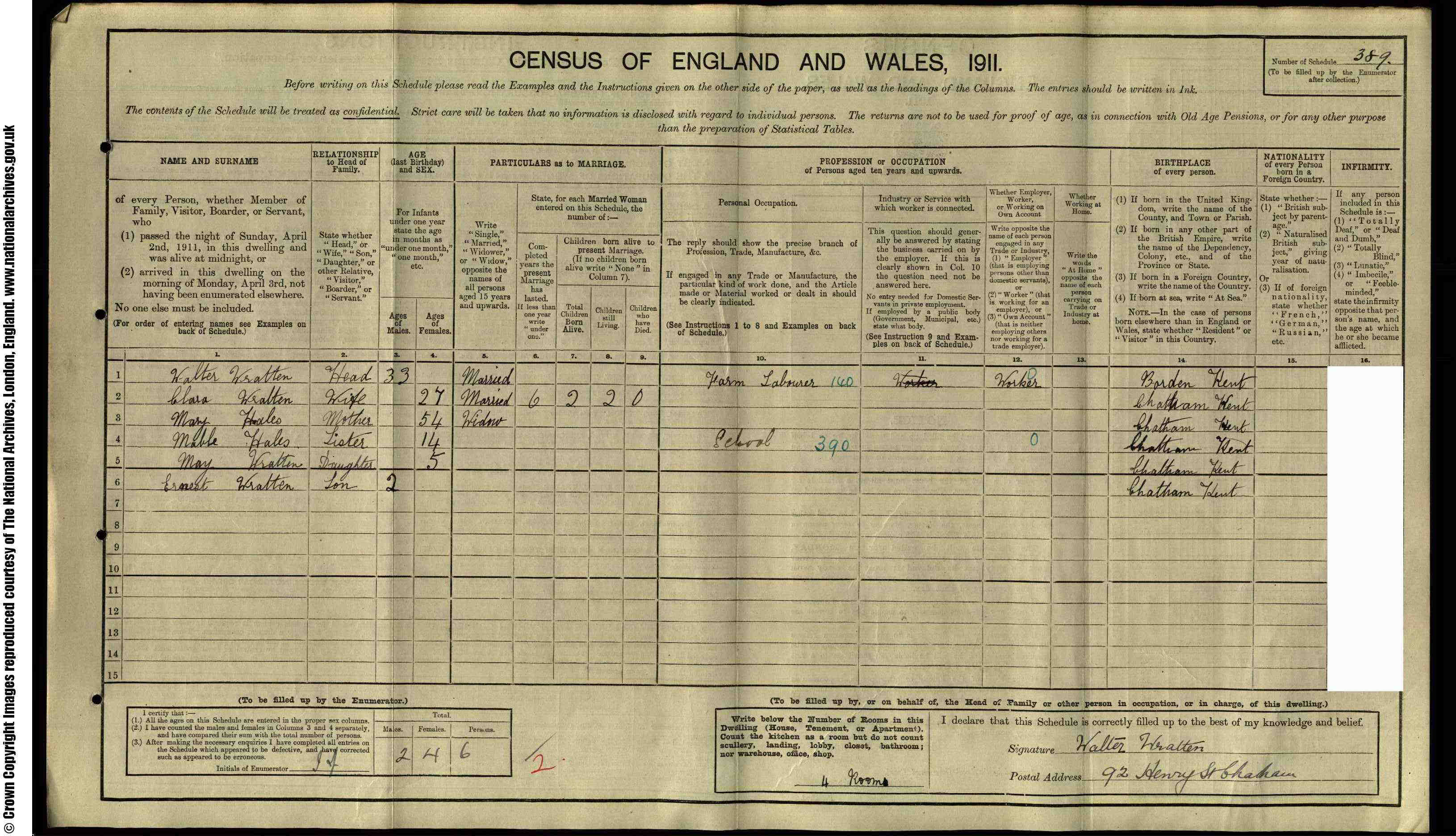 • Lived at: 92 Henry Street, 1911, Chatham, Kent, England.