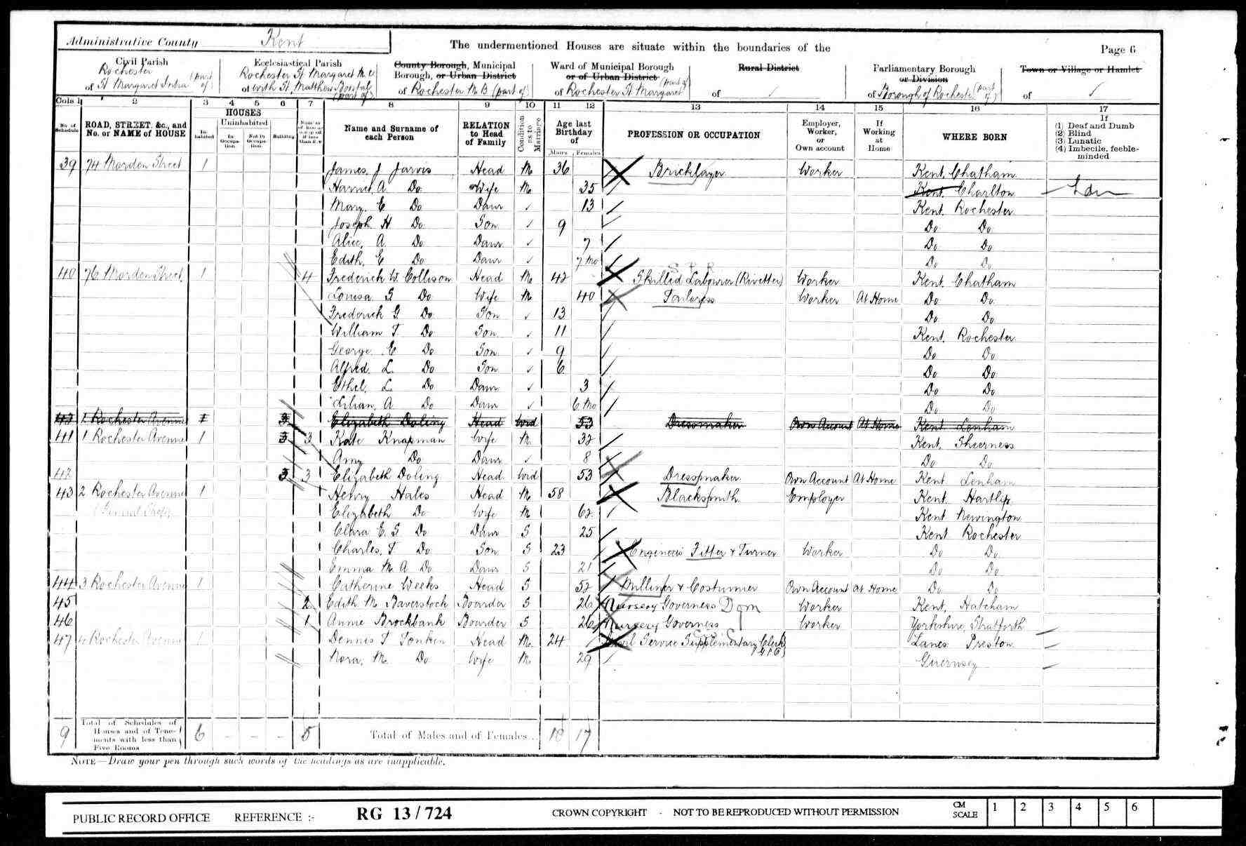 • Occupation: Engine FItter, 1901, Rochester, Kent, England.