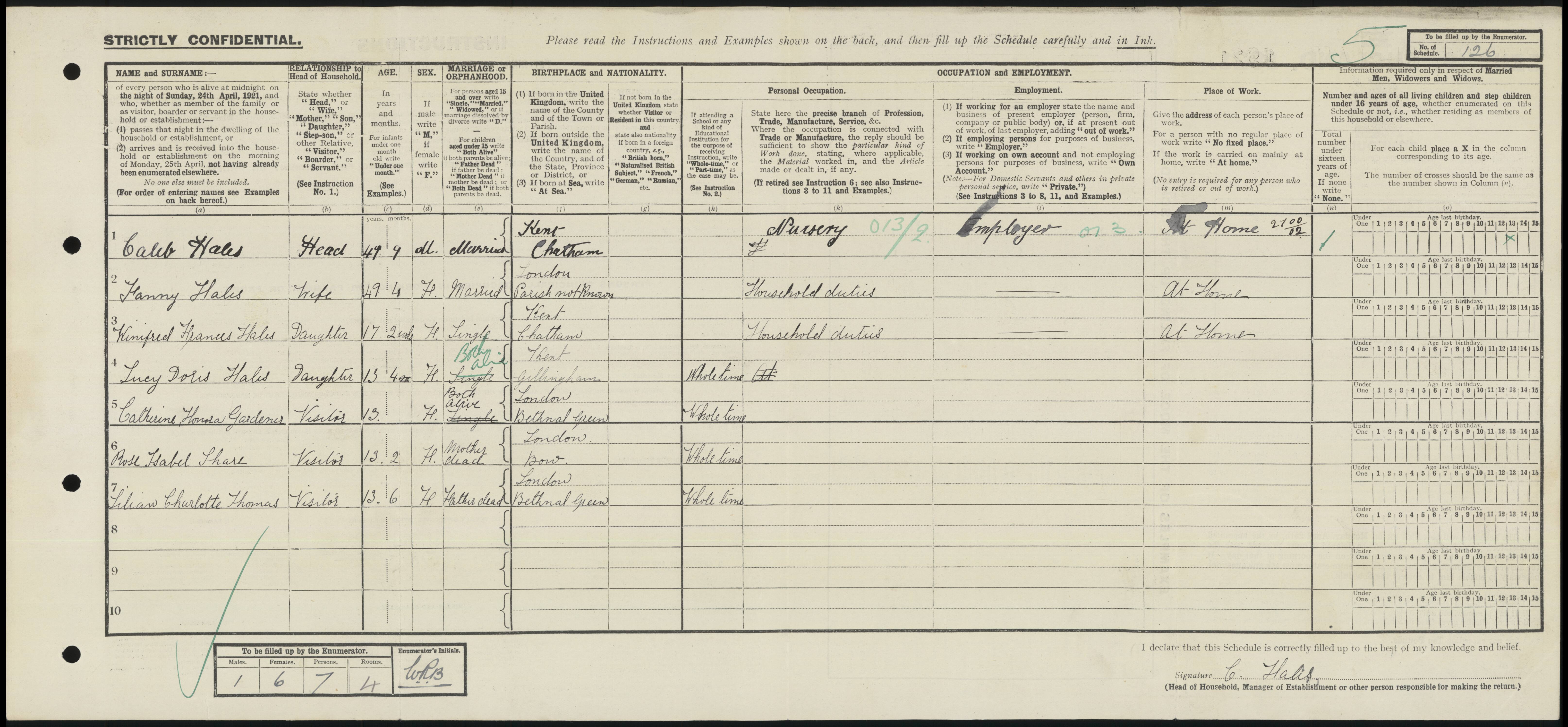 • Occupation: Nursery, 1921, Gillingham, Kent, England.