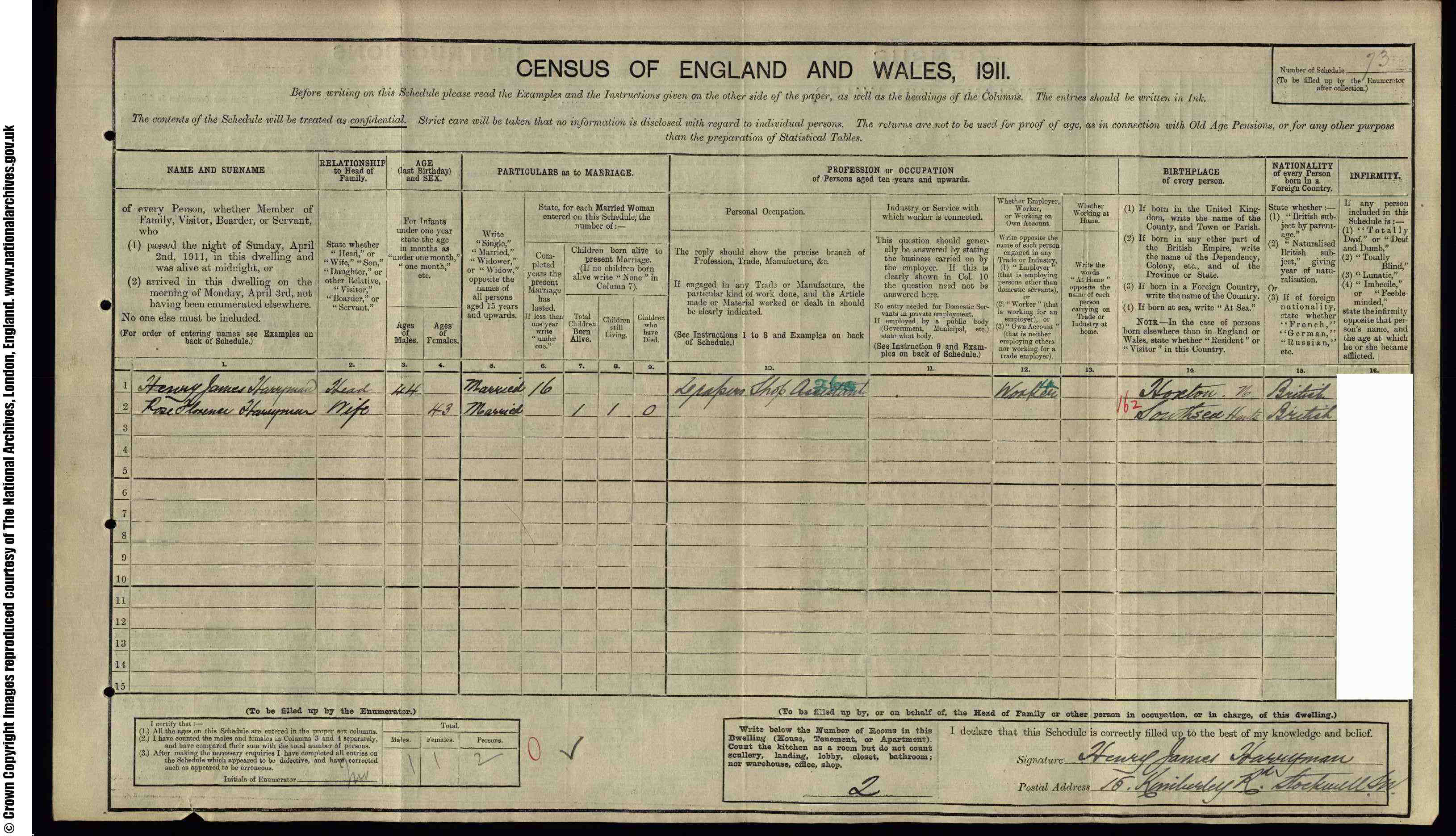 • Occupation: draper's assistant, 1901, Lambeth, London, England. 5 Although Henry states he is single at this time, he is already married to Rose, and in fact, has a young son. • Lived at: 16 Kimberley Road, 1911, Stockwell, London.