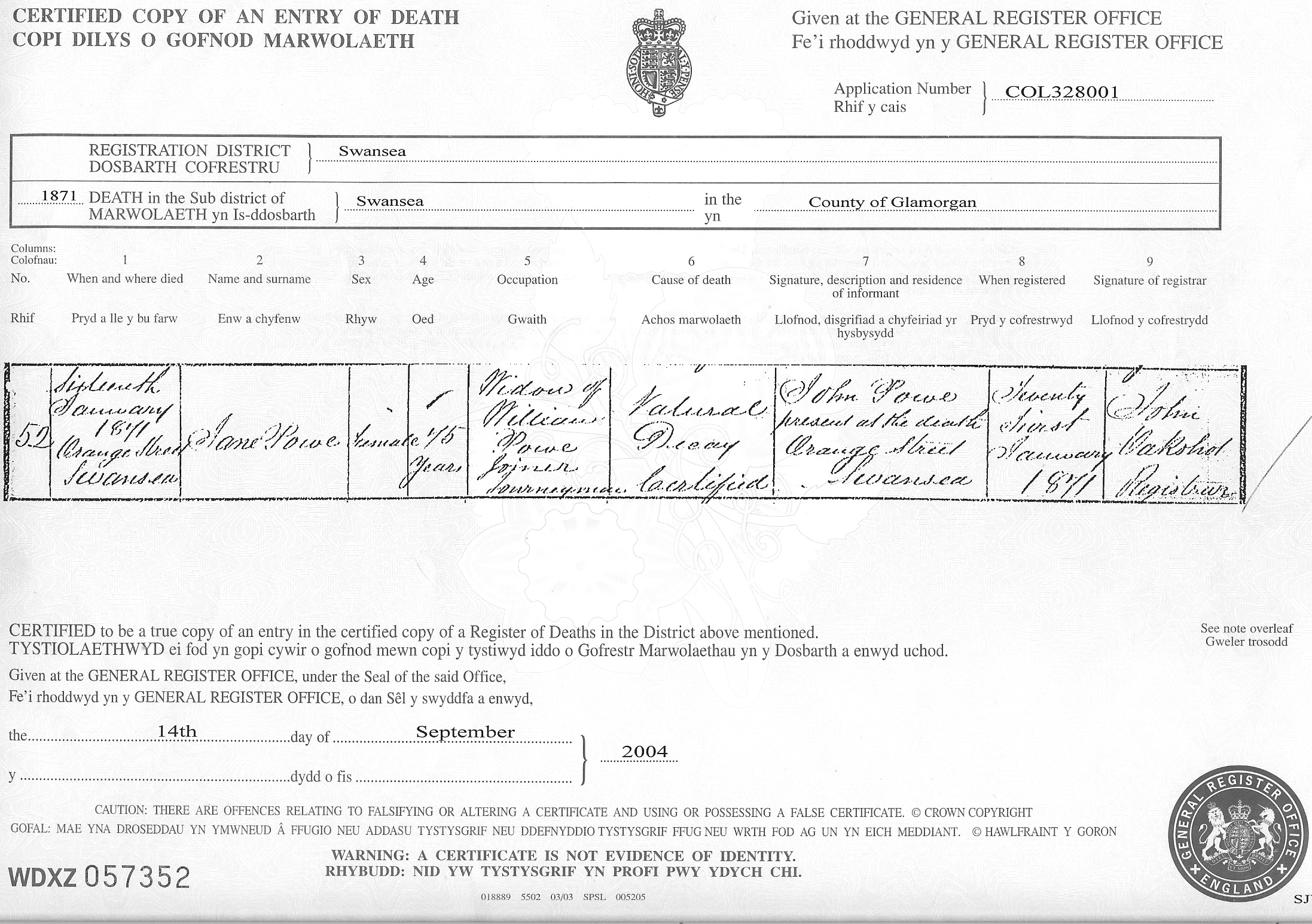 1 (Record of Death(GRO) , Certificate) ID: DC, DC WDXZ 057352. Cit. Date: 20 Sep 2004. Cit. ID: DC WDXZ 057352. Surety: 4.
