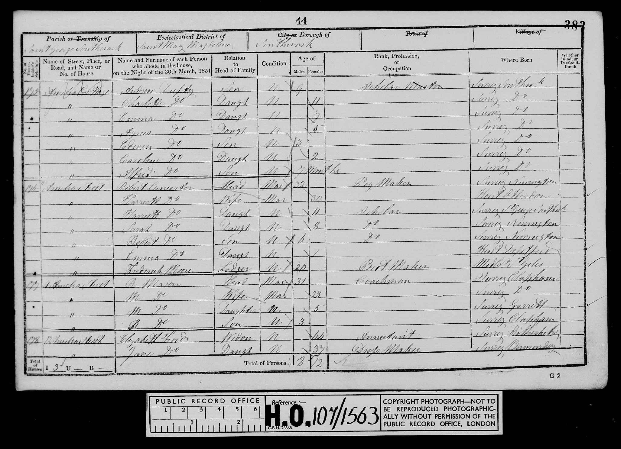 Events • Lived at: Little Lant Street, 1841, Southwark, Surrey, England.