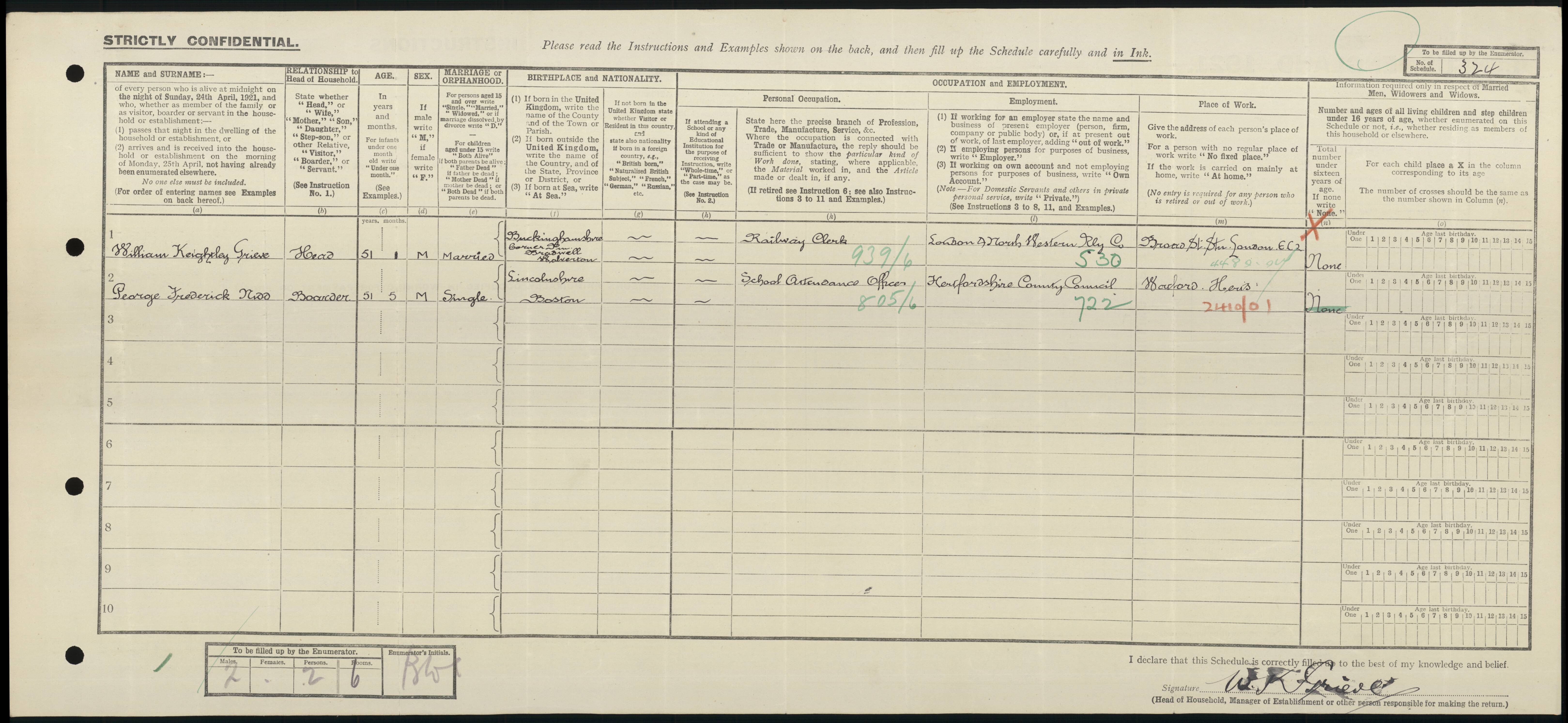 • Occupation: School Attendance Officer, 1921, Watford Hertfordshire. Boarding with a Mr. Gridle? 21 Nascot Street