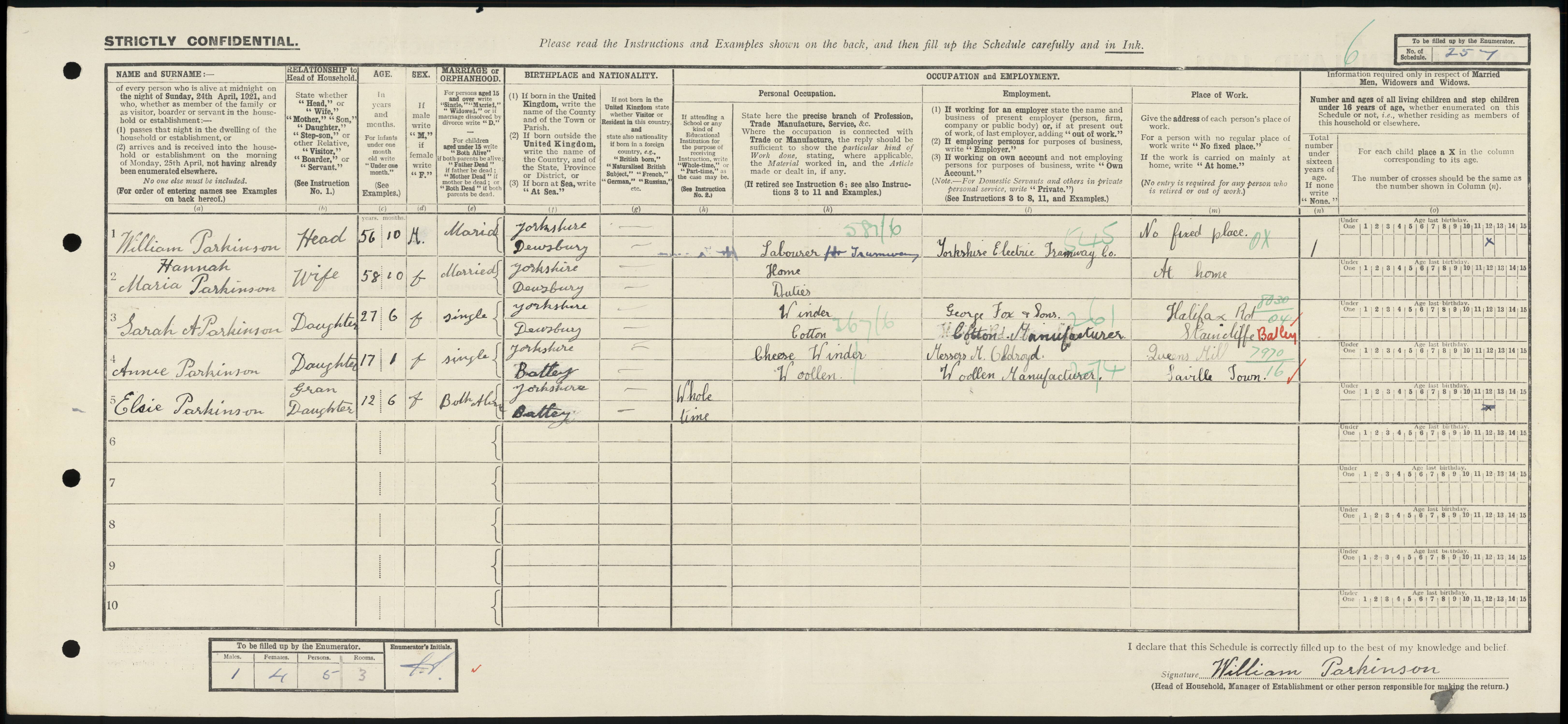 • Lived at: 65 King Street, 1911, Batley Carr, Yorkshire, England. • Occupation: Coal Miner Out of Work, 1911, Batley Carr, Yorkshire, England.