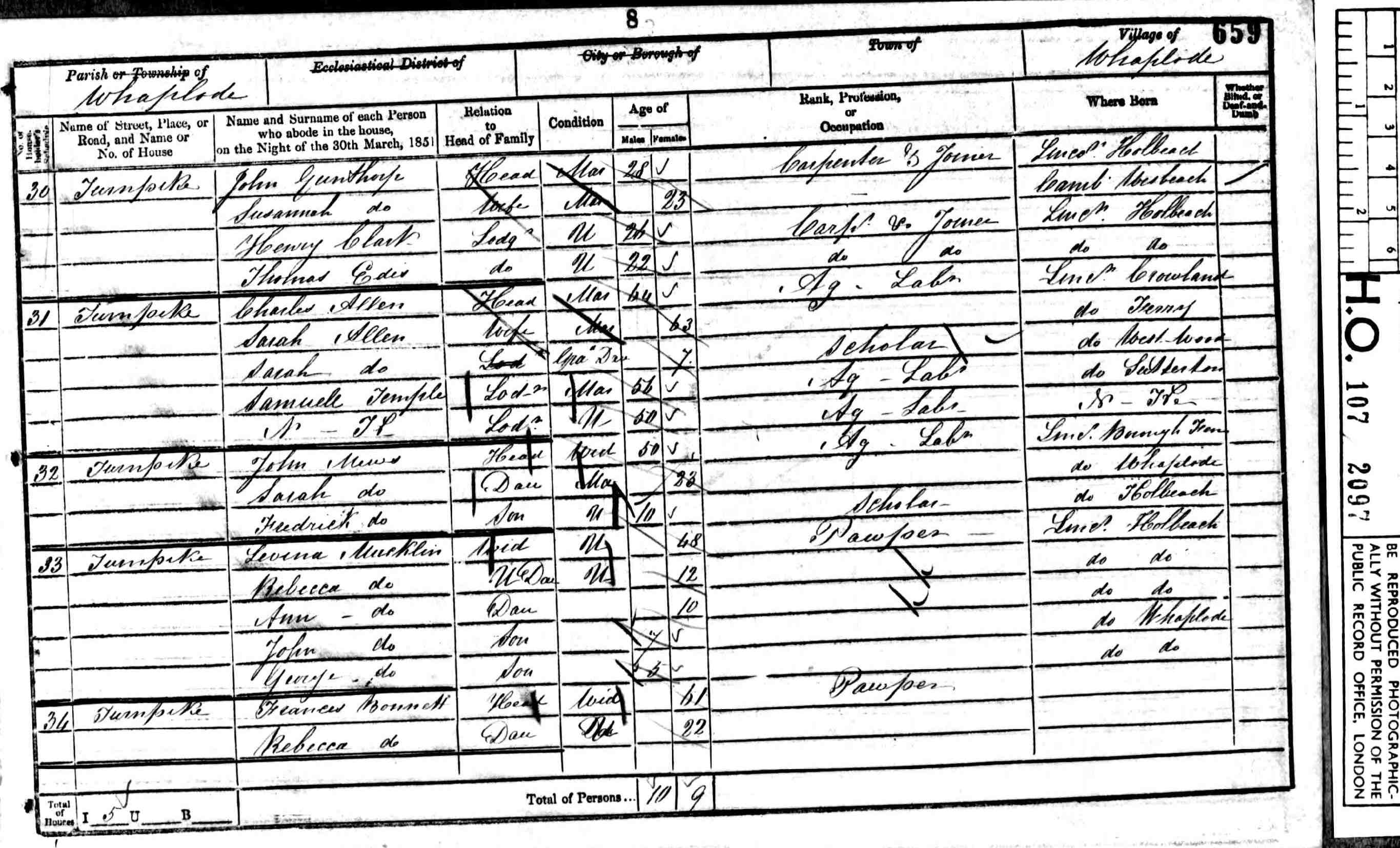 • Lived at: Turnpike, 1851, Whaplode, Lincolnshire. 3 • Occupation: Ag Lab, 1851, Whaplode, Lincolnshire. 3