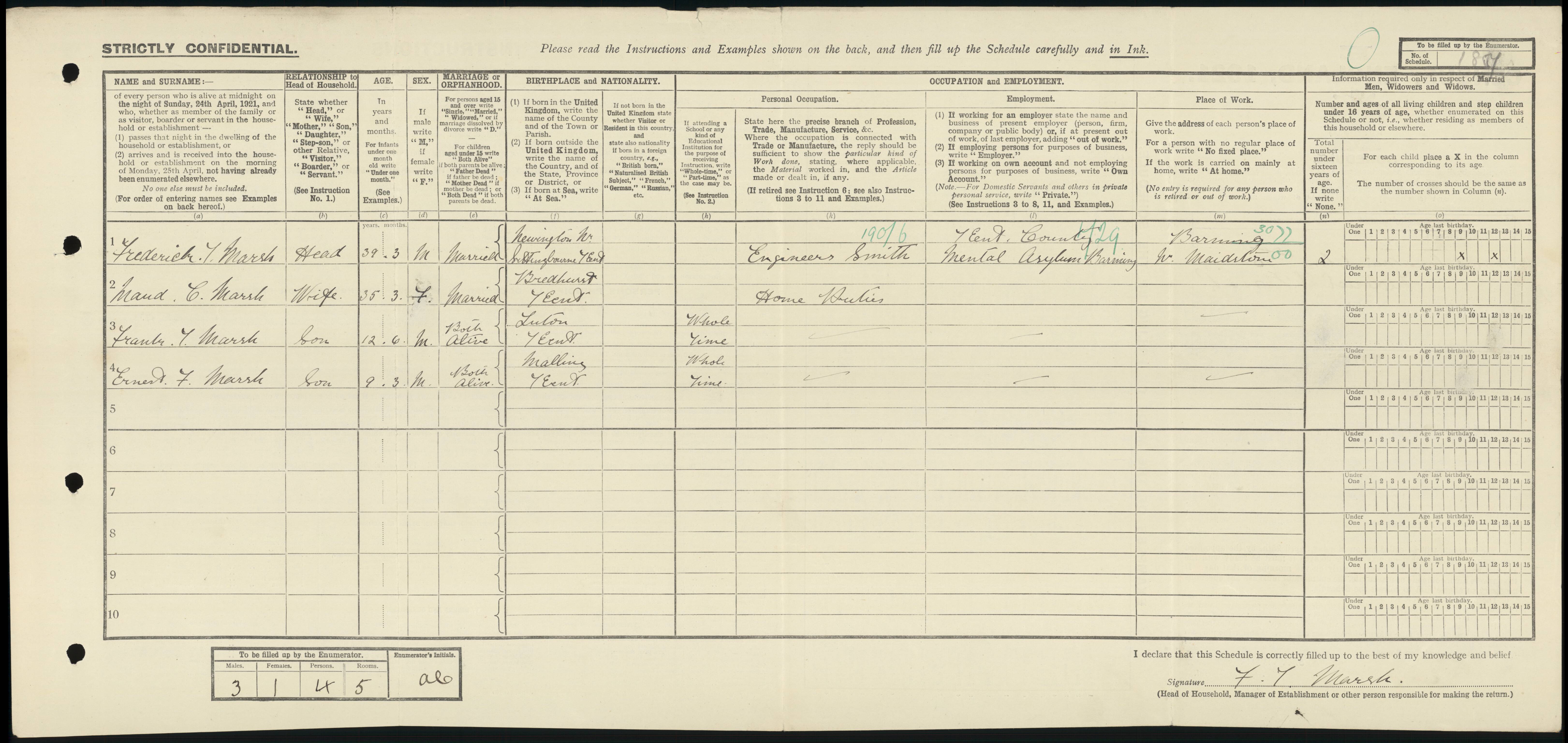 • Lived at: 1 Church Field, 1911, West Malling, Kent, England.