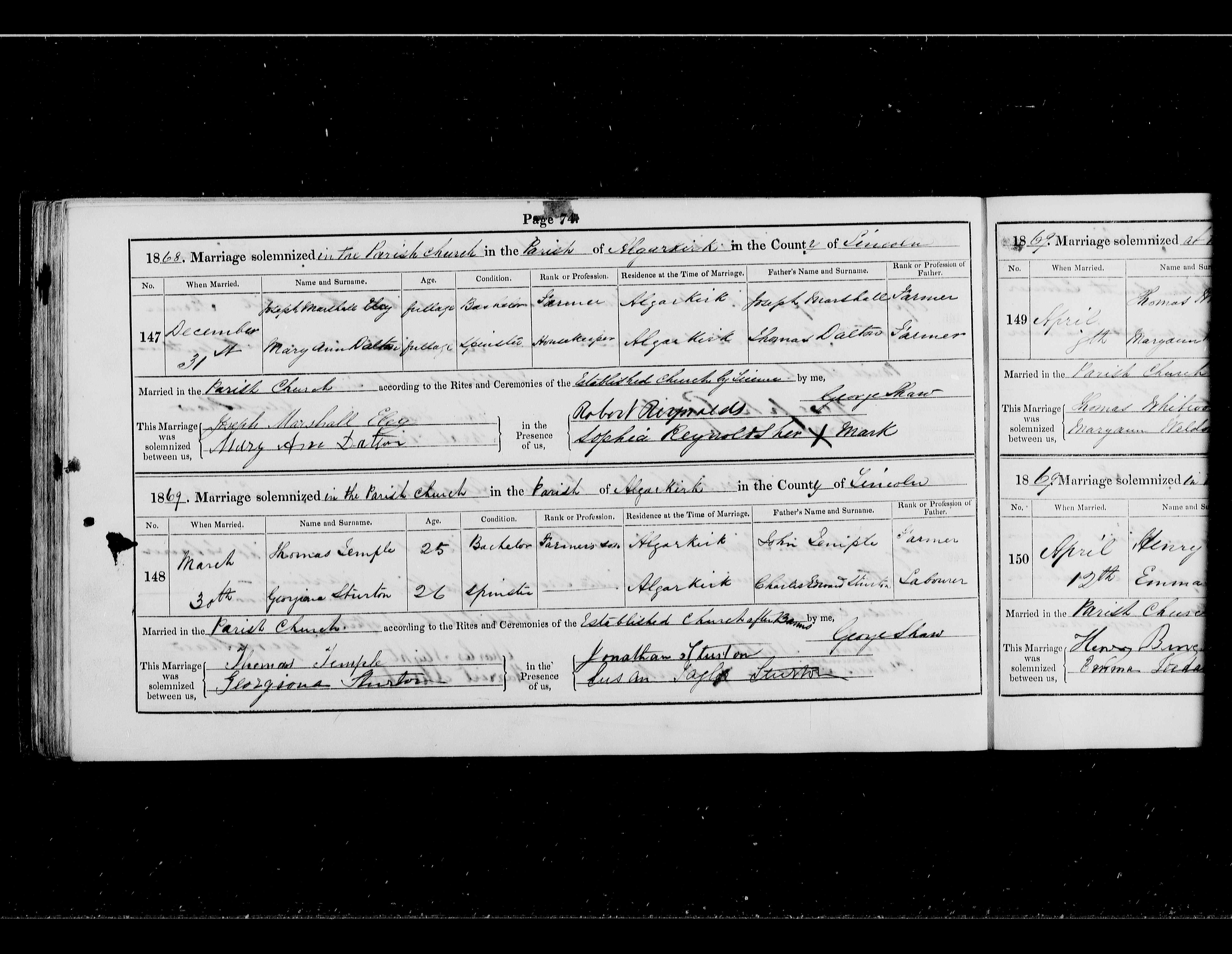 • Marriage Image: Parish Records, 1869, Algarkirk, Lincolnshire, England. • Lived at: Boar and Gun, Skeldyke, 1871, Kirton, Lincolnshire, England. 1 5