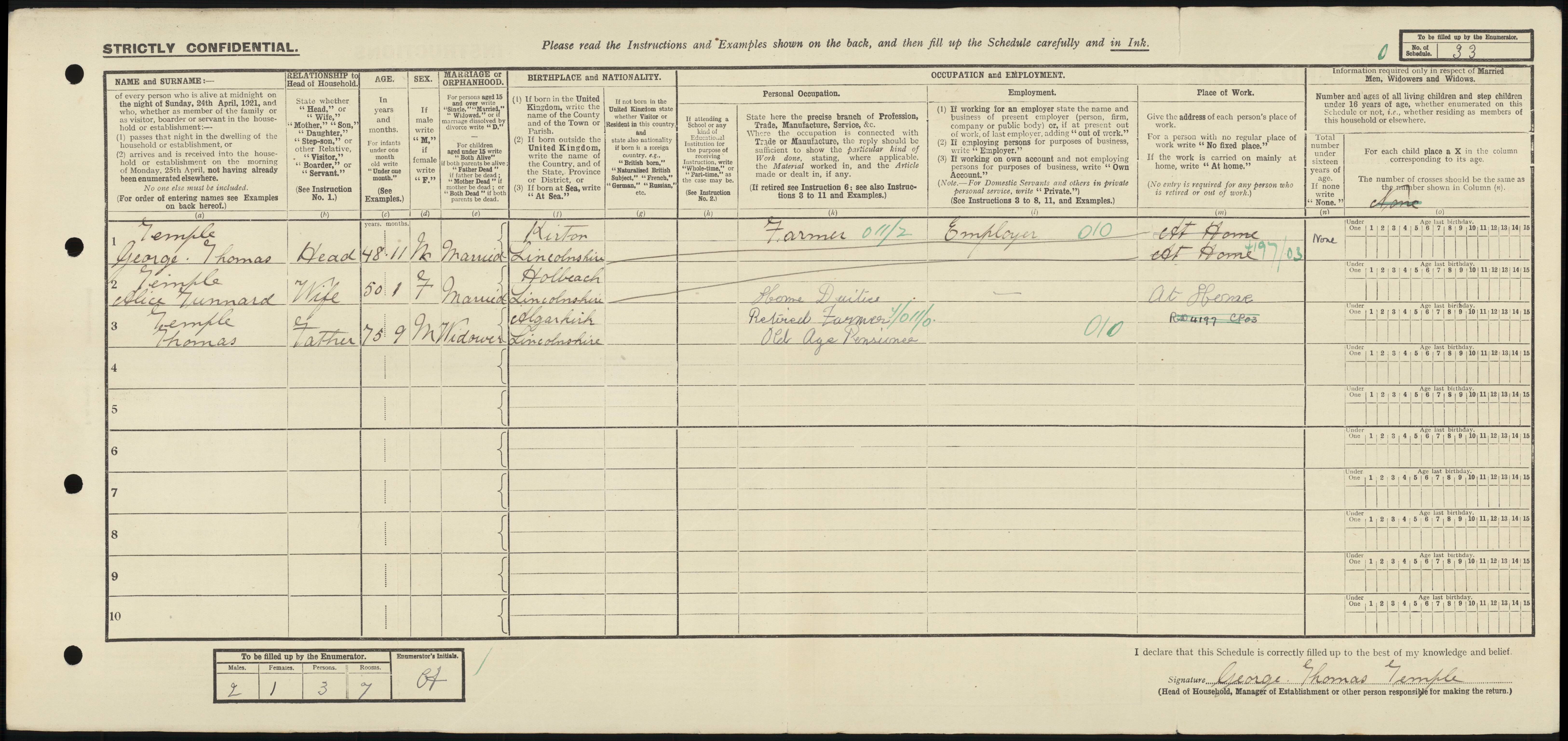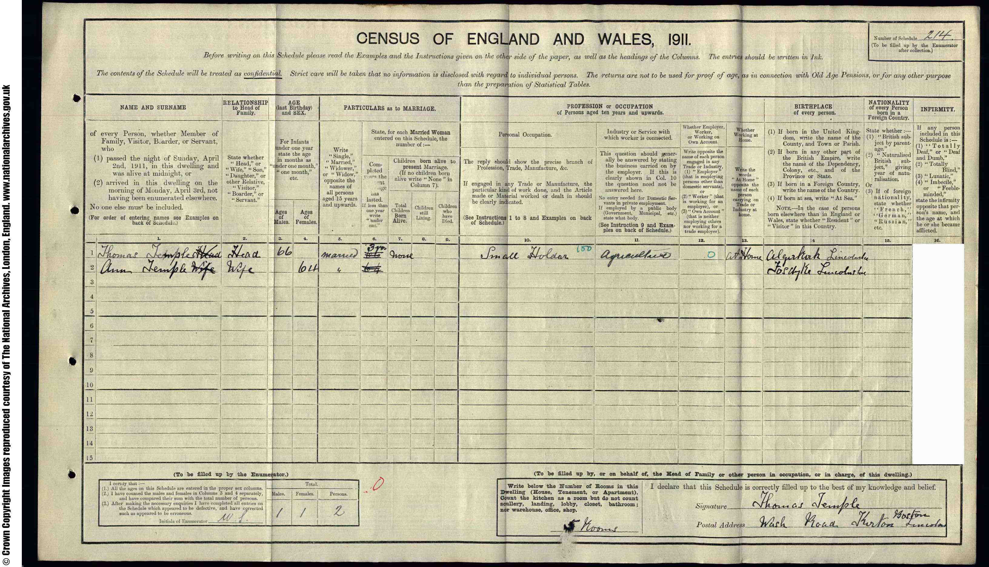 • Occupation: Small Holder, 1911, Wash Road, Kirton, Lincolnshire, England.