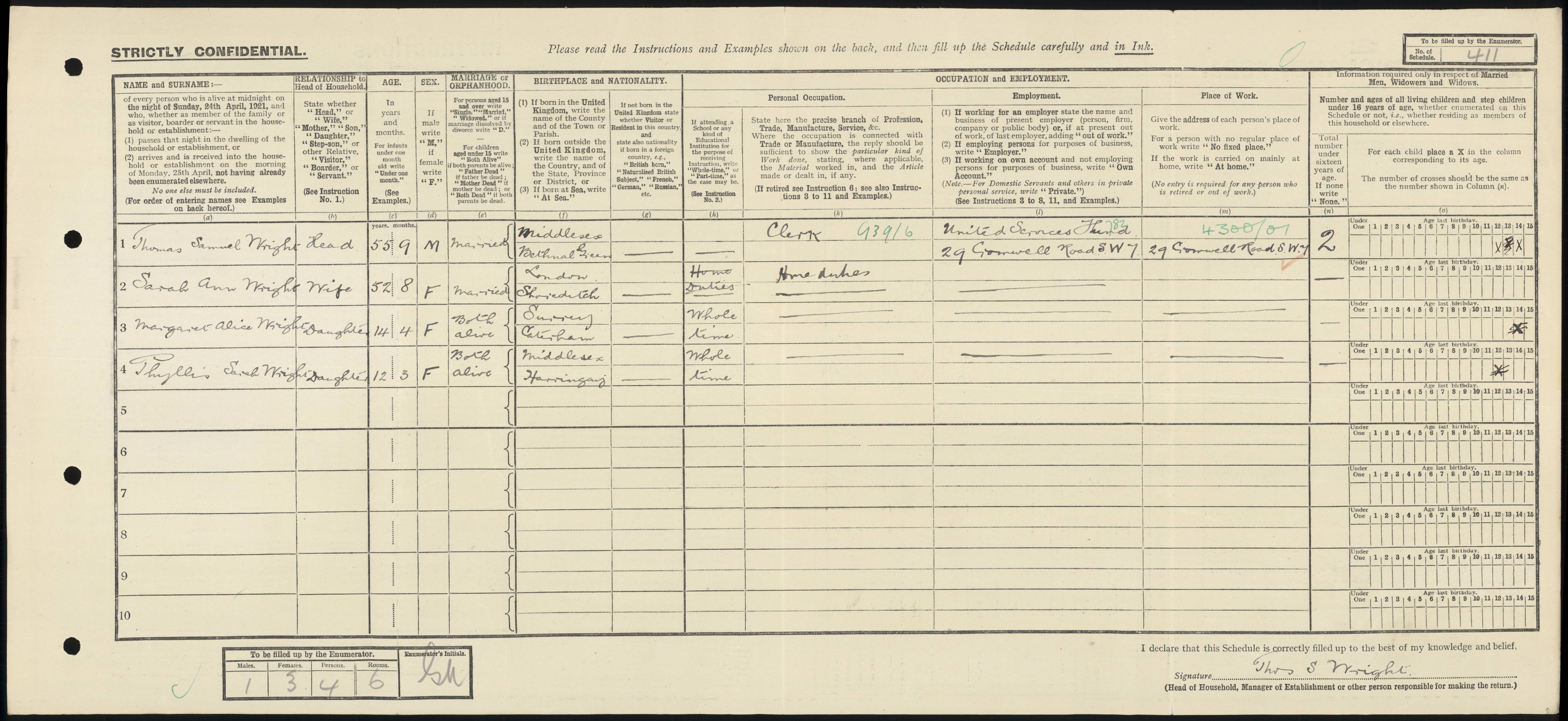 • Lived at: 46 Park Road, 1911, Haringey, London.
