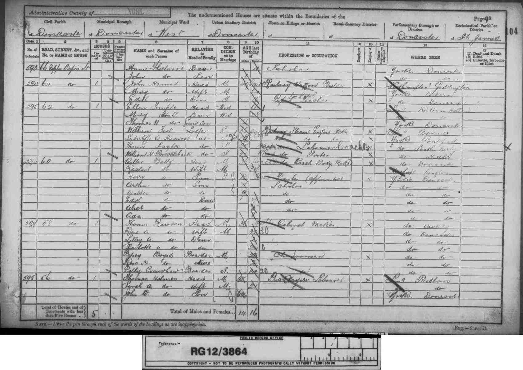 • Lived at: 62 Upper Oxford Street, 1901, Doncaster, Yorkshire, England.
