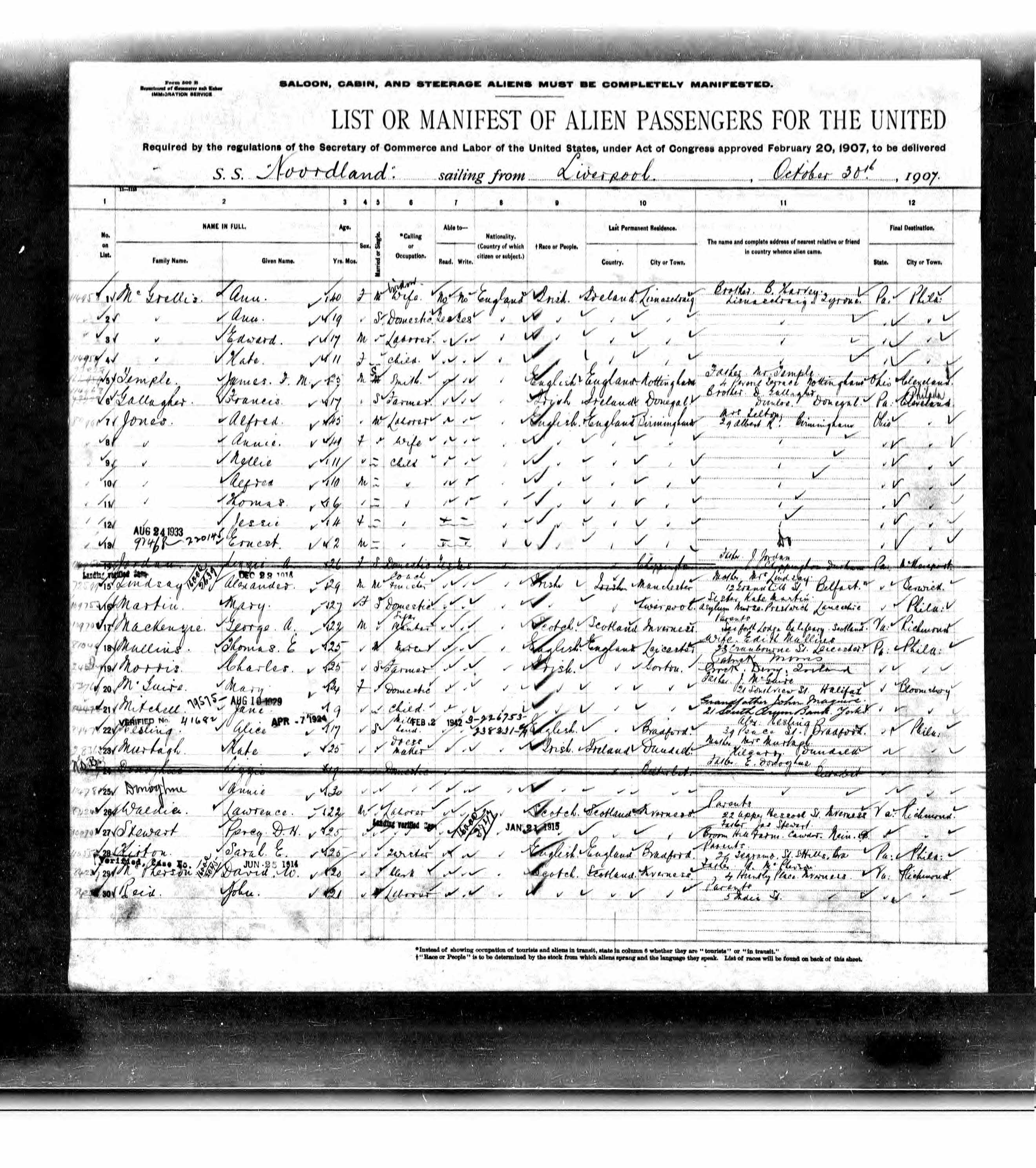 • Migrated: To USA from Liverpool, 1907, Cleveland, Ohio.