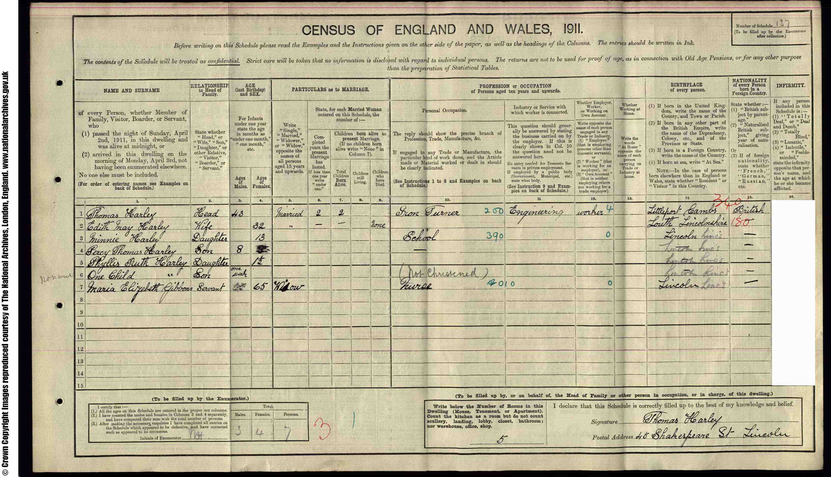 • Lived at: 45 Shakespeare Street, 1911, Lincoln, Lincolnshire, England.