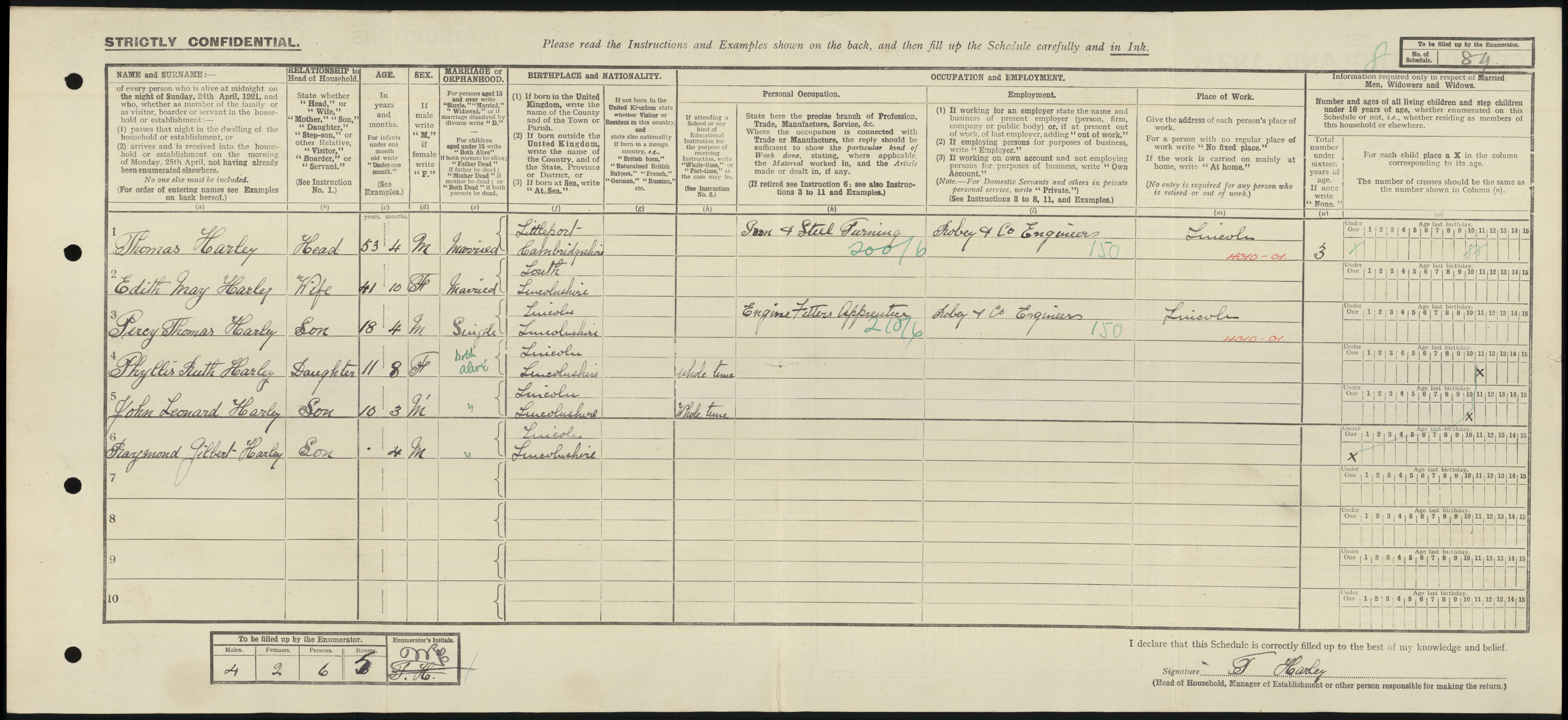 • Lived at: 45 Shakespeare Street, 1921, Lincoln, Lincolnshire, England.
