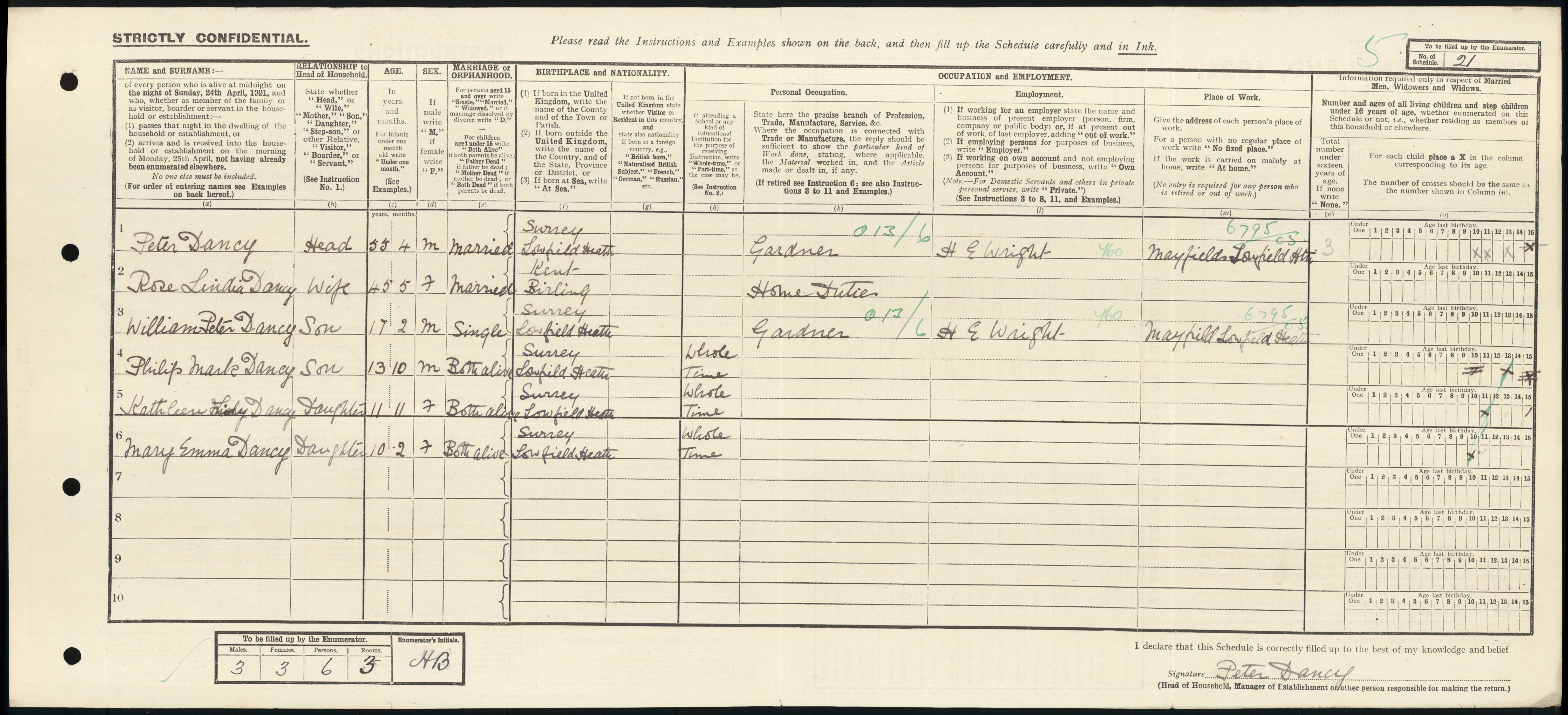 • Lived at: Brookfield Cottages, 1921, Lowfield Heath, Near Crawley, Sussex.