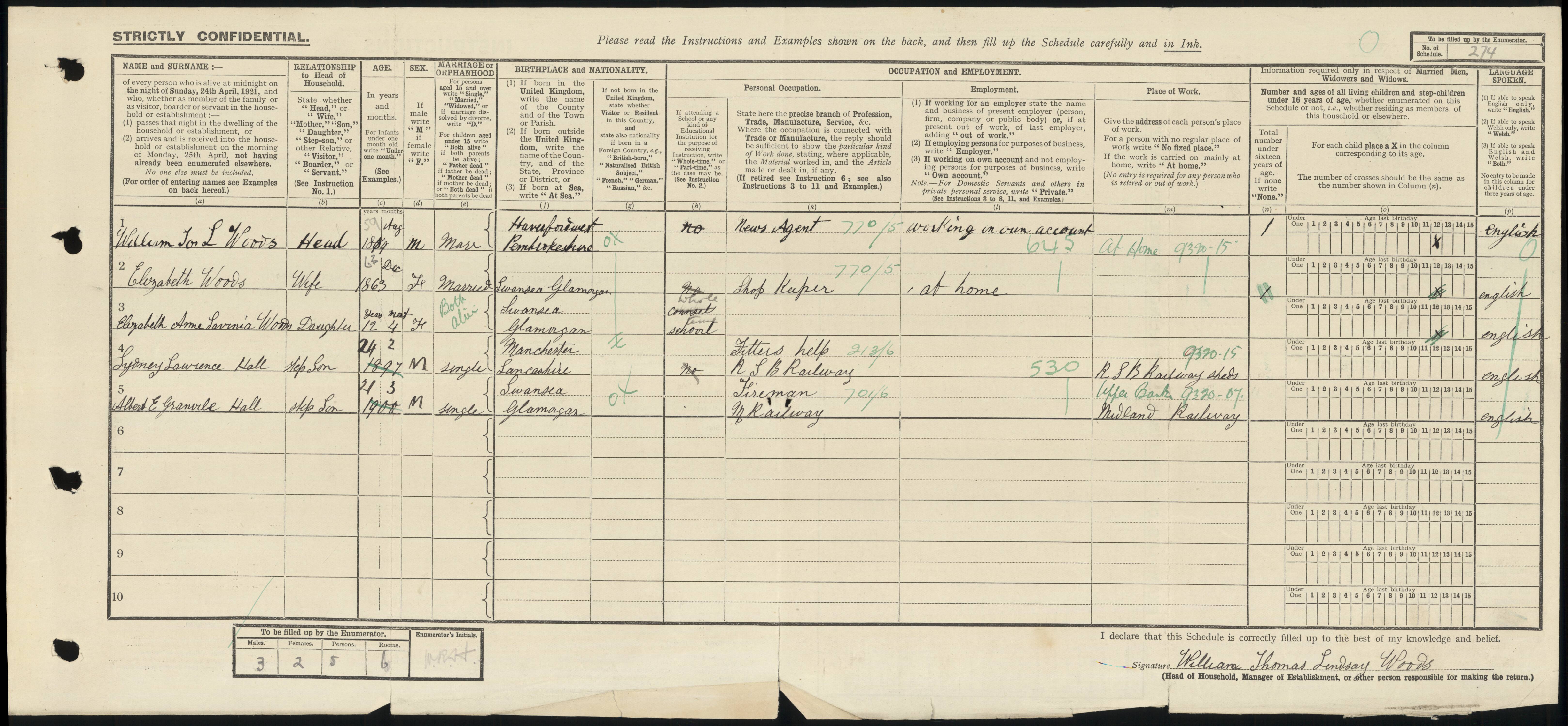 • Lived at: 17 Fisher Street, 1901, Swansea, Glamorgan, Wales.