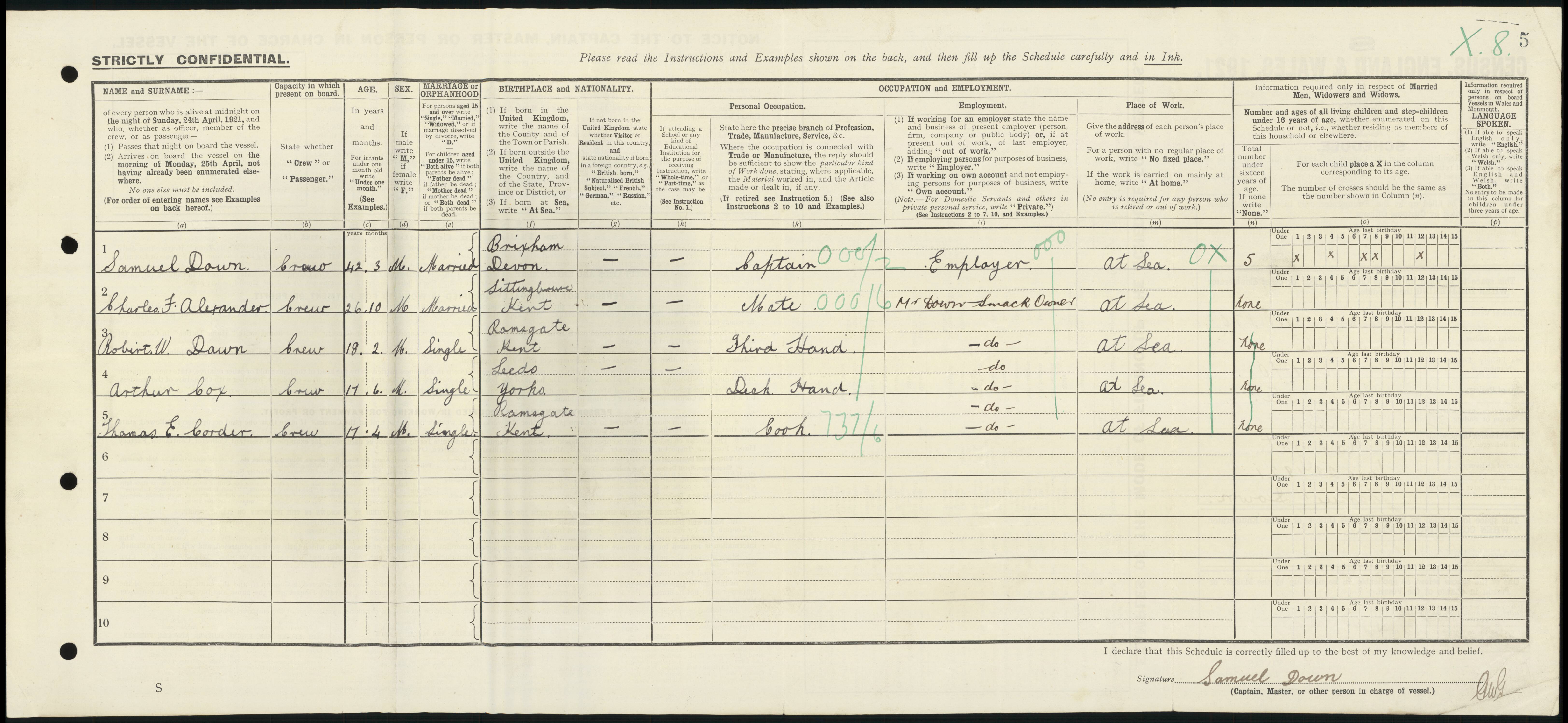 • Occupation: Mate, 1921, Smack Sprag, R18 Ramsgate, Kent.