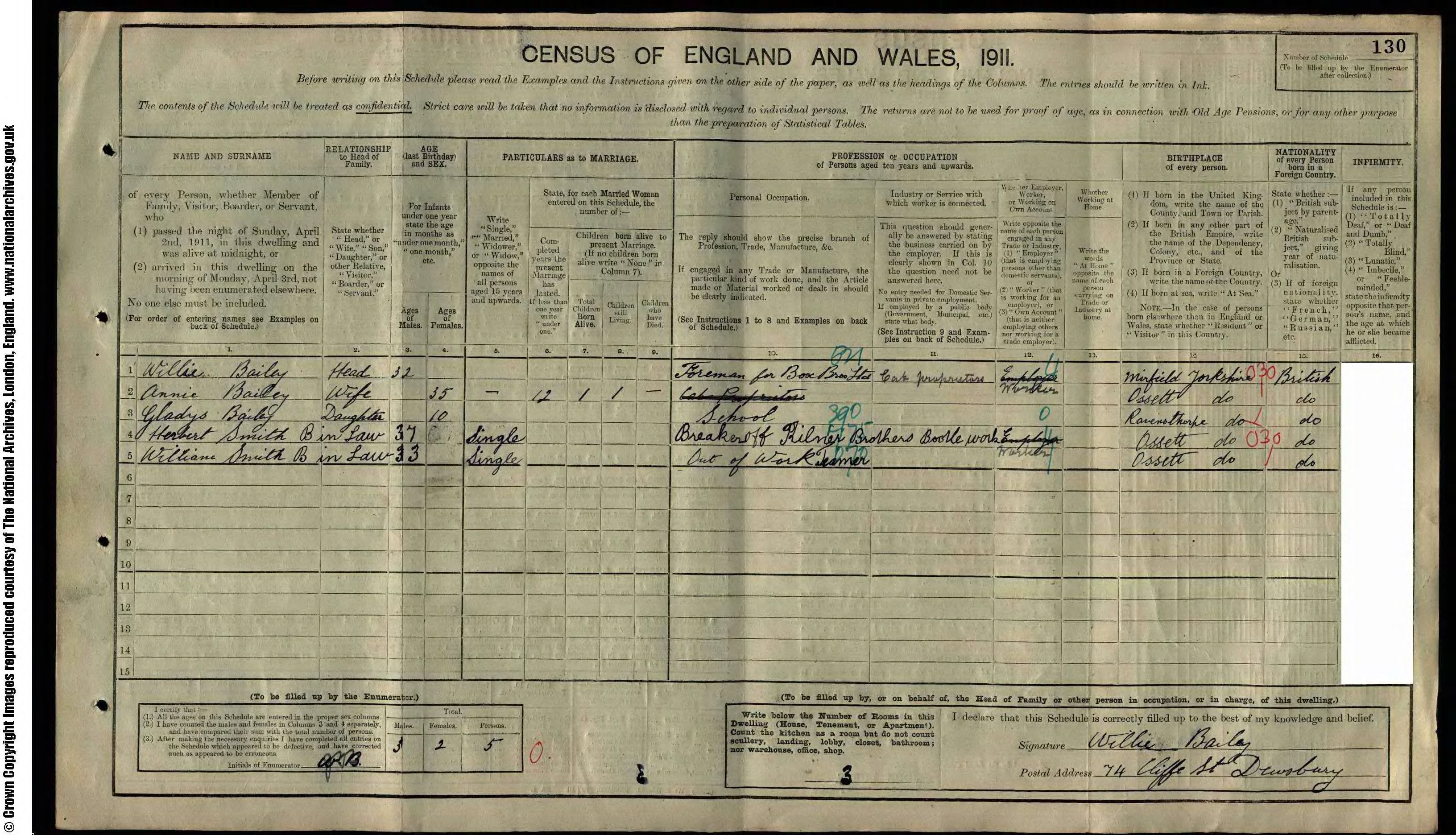 • Lived at: 74 Cliffe Street, 1911, Dewsbury, Yorkshire & Yorkshire (West Riding), England.