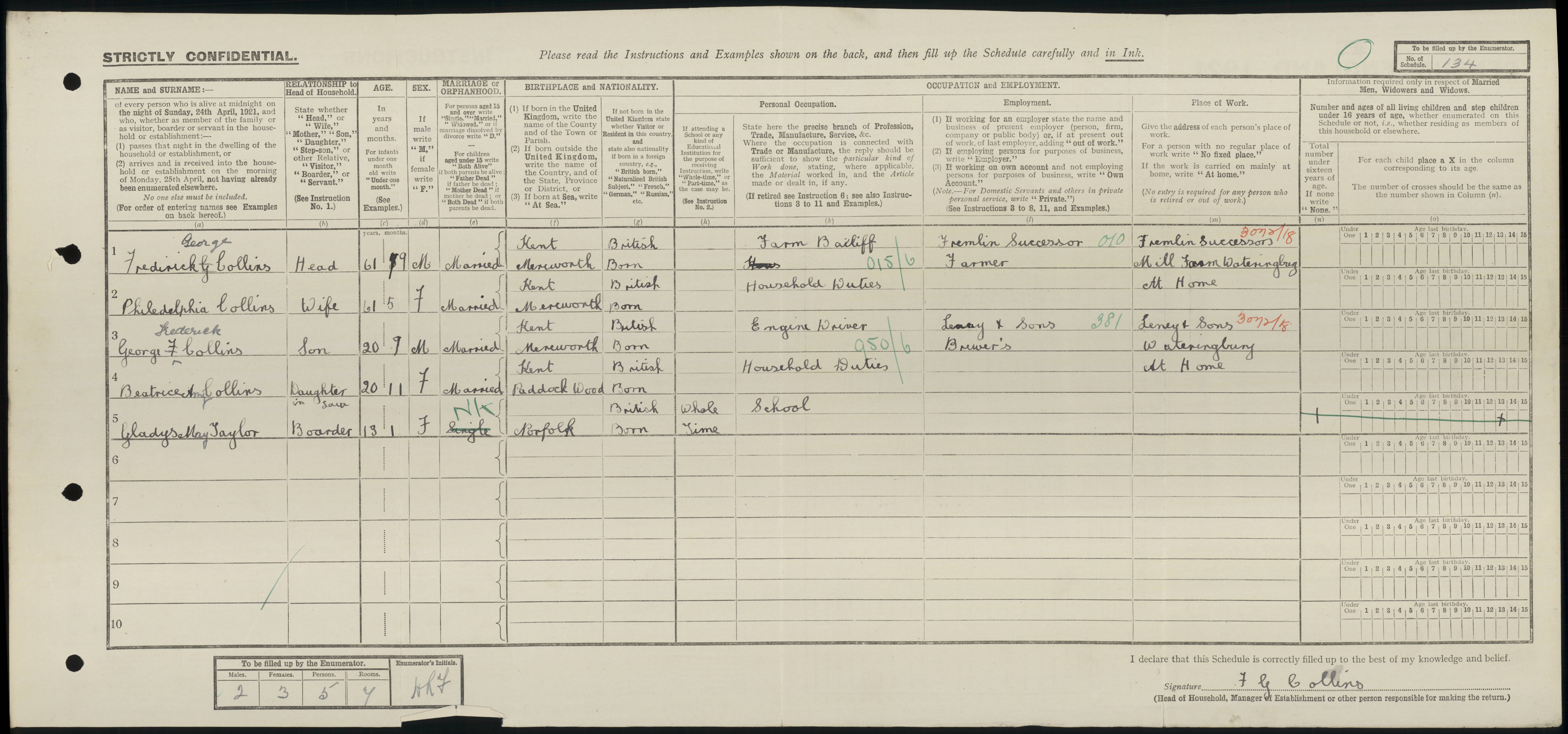 • Lived at: Upper Mill, 1921, Wateringbury.