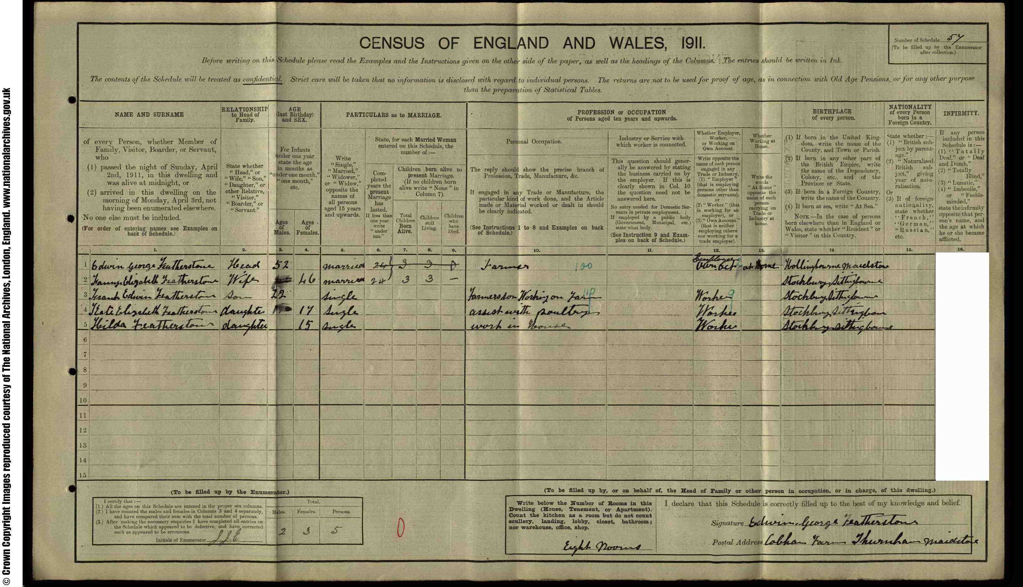 • Lived at: Cobham Farm, Thurston, 1911, Maidstone, Kent, England.