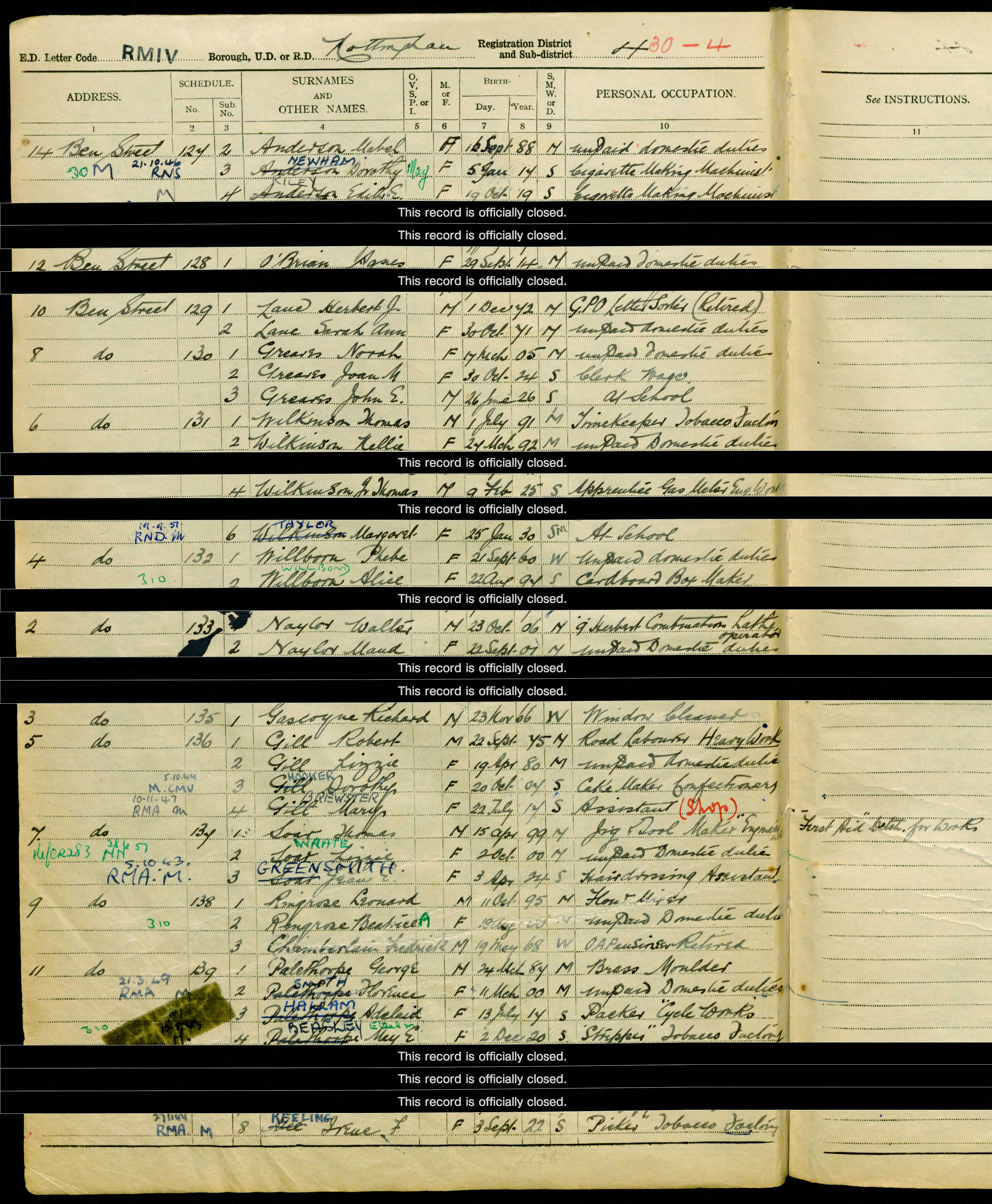 • Lived at: 11 Ben Street, 1939, Nottingham, Nottingham, England.