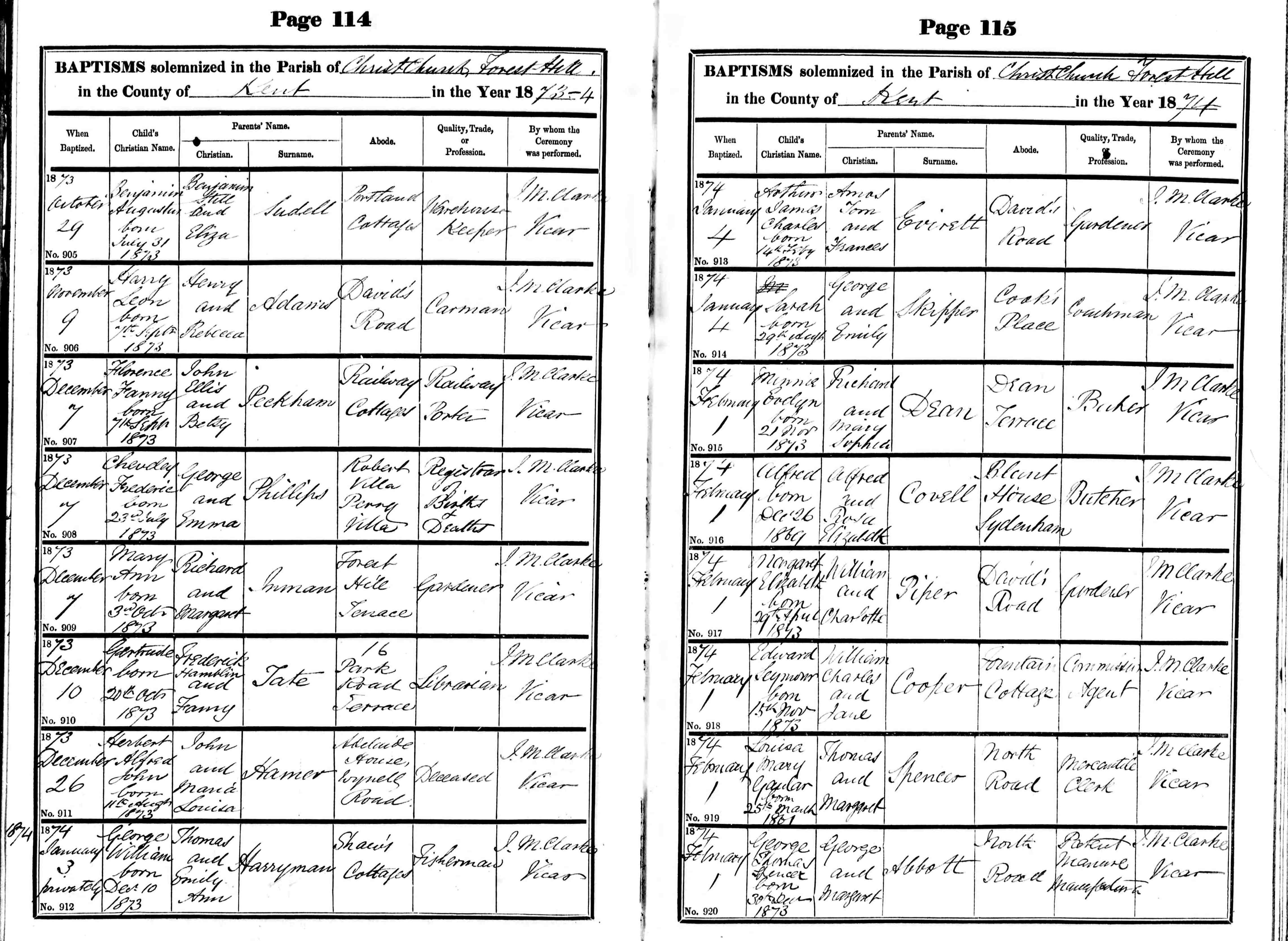 • Lived at: Shaws Cottages, 1874, Lewisham, Kent, England.