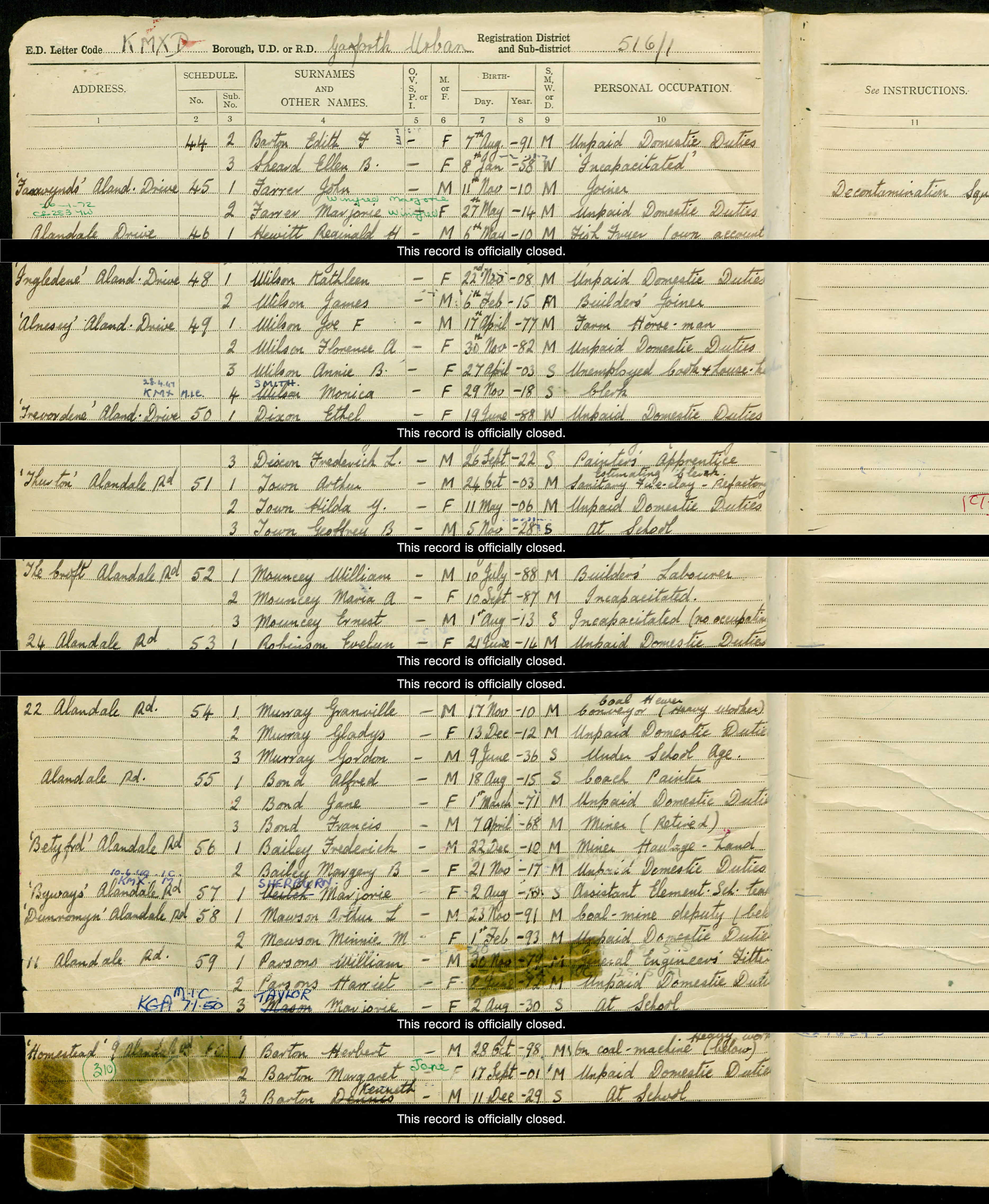 • Lived at: 'Betyfrd' Alandale Rd, 1939, Garforth, Yorkshire.