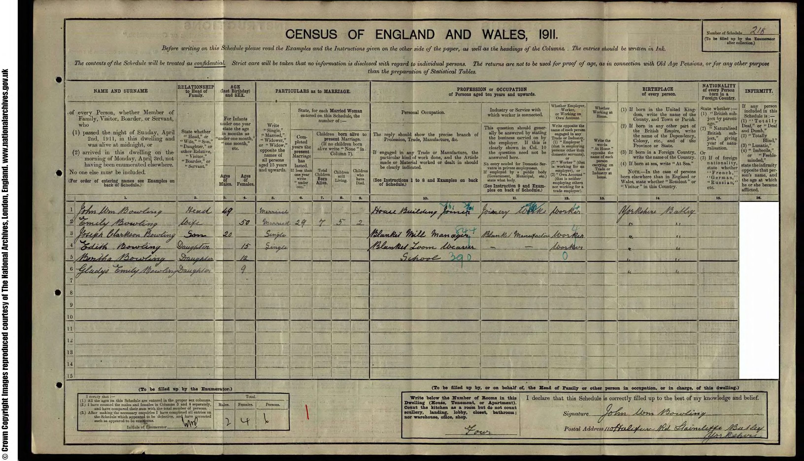 • Lived at: 110 Halifax Road, Staincliffe, 1911, Batley, Yorkshire, England.