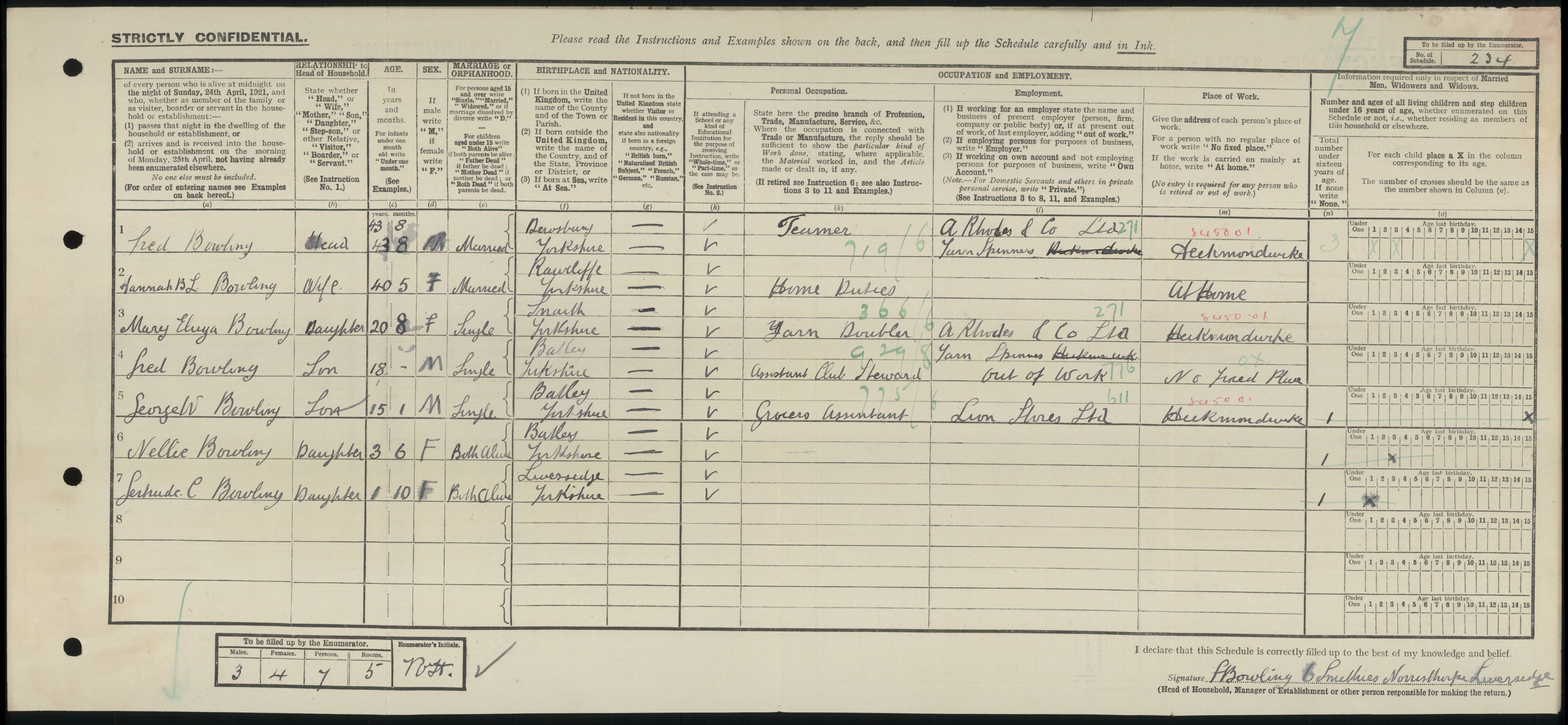 • Lived at: Smithies, Heckmondwike, 1921, Liversedge, Yorkshire (West Riding), England.